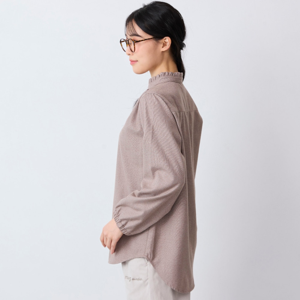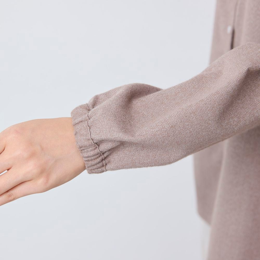 身長162cm、体重52kgの体型でLサイズでほぼピッタリでしたが、袖丈が若干短めで腕を上げたり曲げたりすると八分袖のブラウスを着ているような感じになってしまいます。
