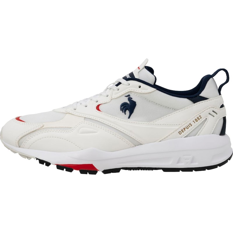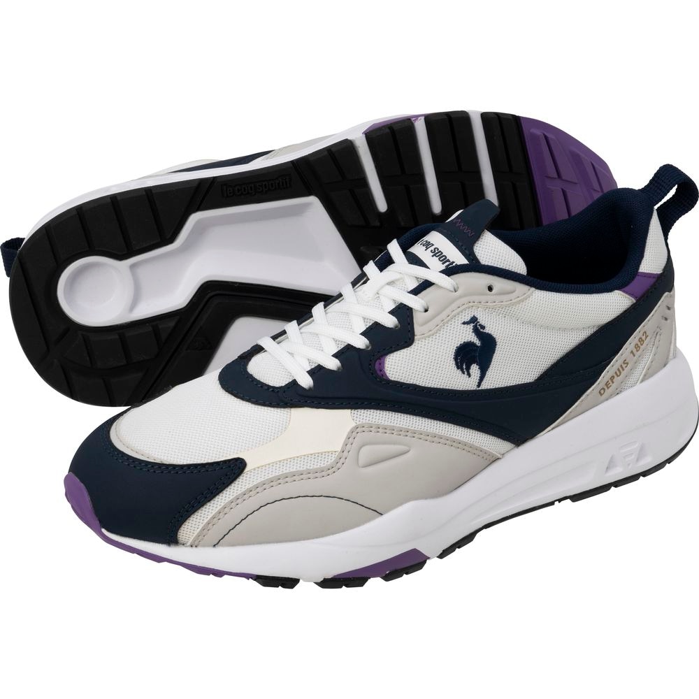 ルコックランニングシューズの代表モデル、LCS R シリーズをベースにしたNEWデザイン。過去のデザインを継承しながらもブランドロゴから連想される柔らかな曲線を落とし込んだしたアッパーデザインを採用。サイドにはアイコニックなサイドパーツを継承しながら新しいデザインを表現。インソールには消臭性・通気性・クッション性のあるポリユーを搭載し前作よりも履き心地を考慮。フランス生まれのブランドを象徴するトリコロールカラーと合わせてファッションに取り入れやすいカラーバリエーションにて展開。アウトソールはクッション性と安定感を重視したインジェクションEVAを採用 、前身のLCS Rシリーズと比較しラバーの面積を減らし軽量を考慮したアウトソール設計。
