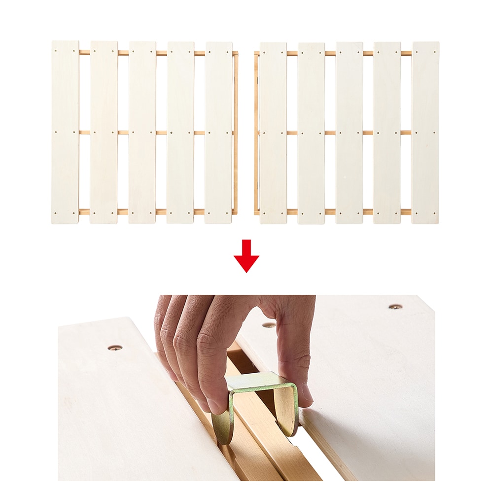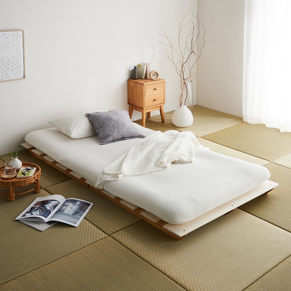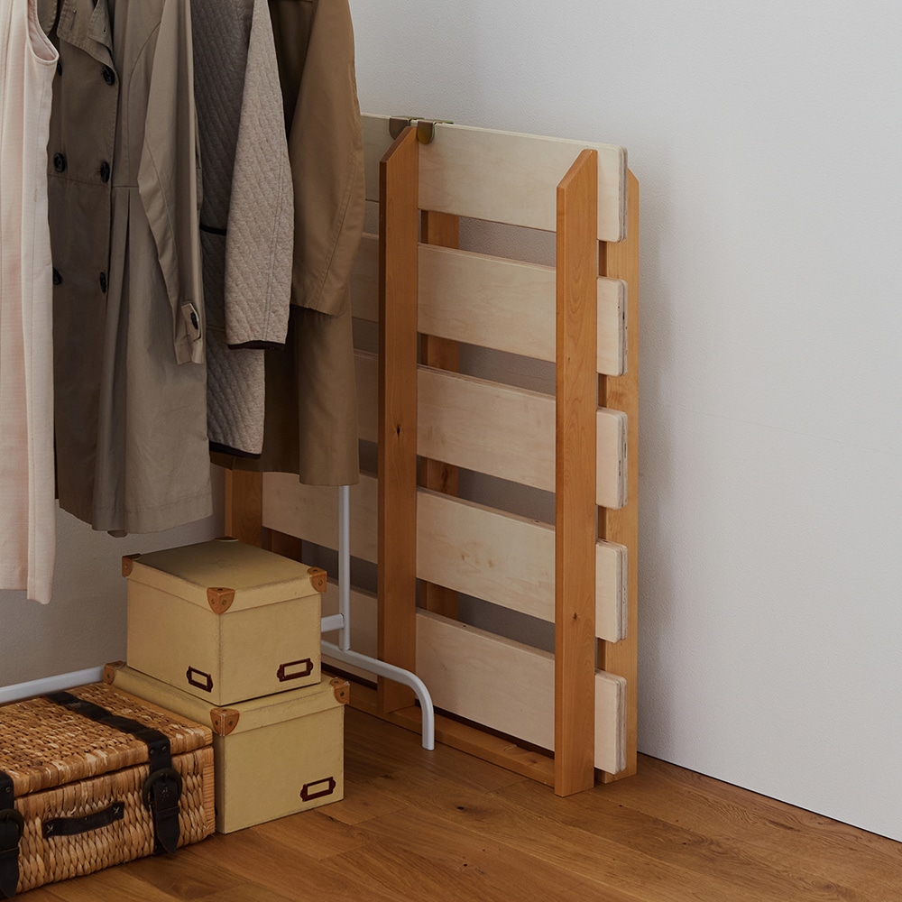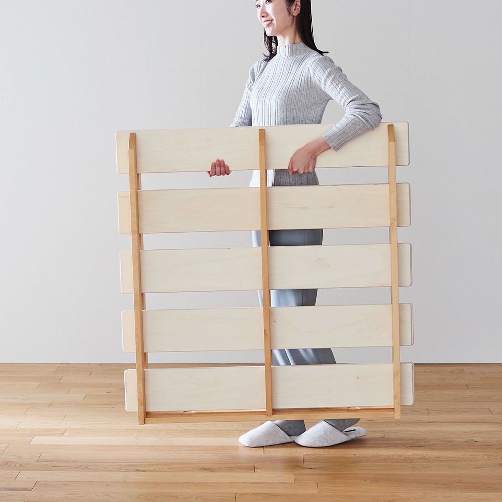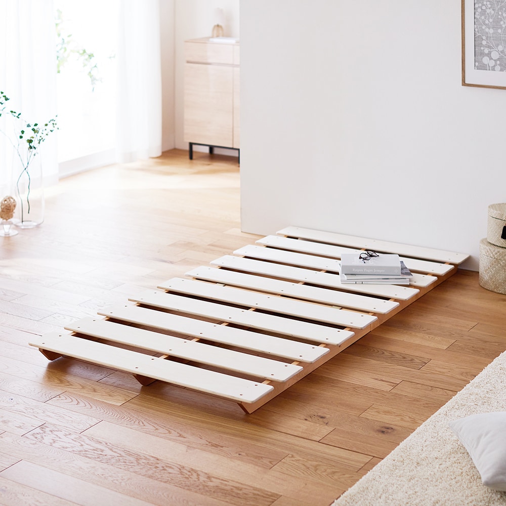 マットレスの下に置いて使いました。普段は床に直置きでマットレスを使っているのですが、これを使ってみて高すぎず、低すぎない高さで、通気性も良くなり良かったです。使わない時は畳んでしまって置けるのも便利。それと板の角を全部丸くしているのが良かったです。
