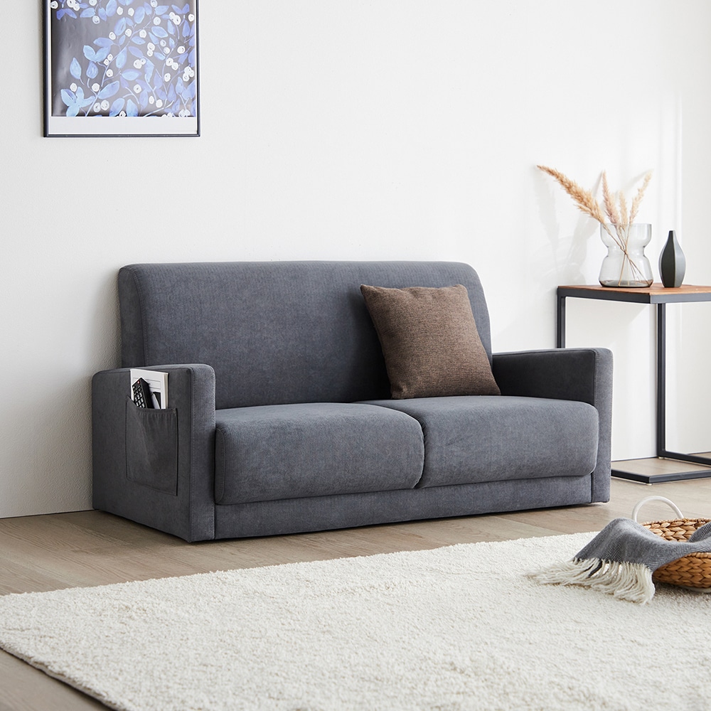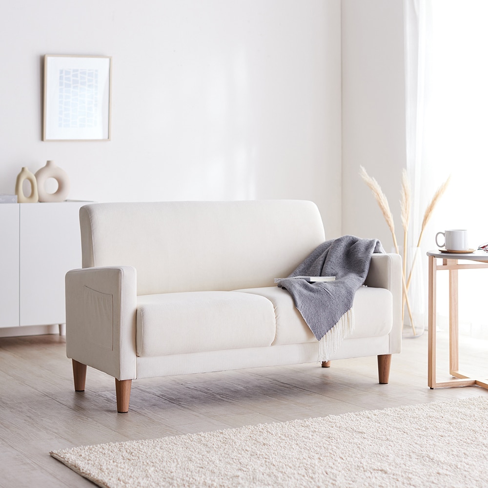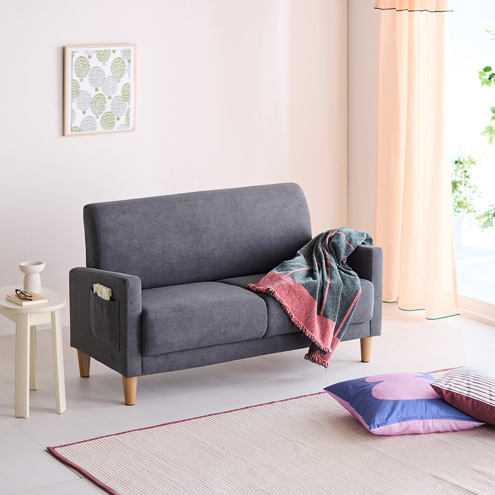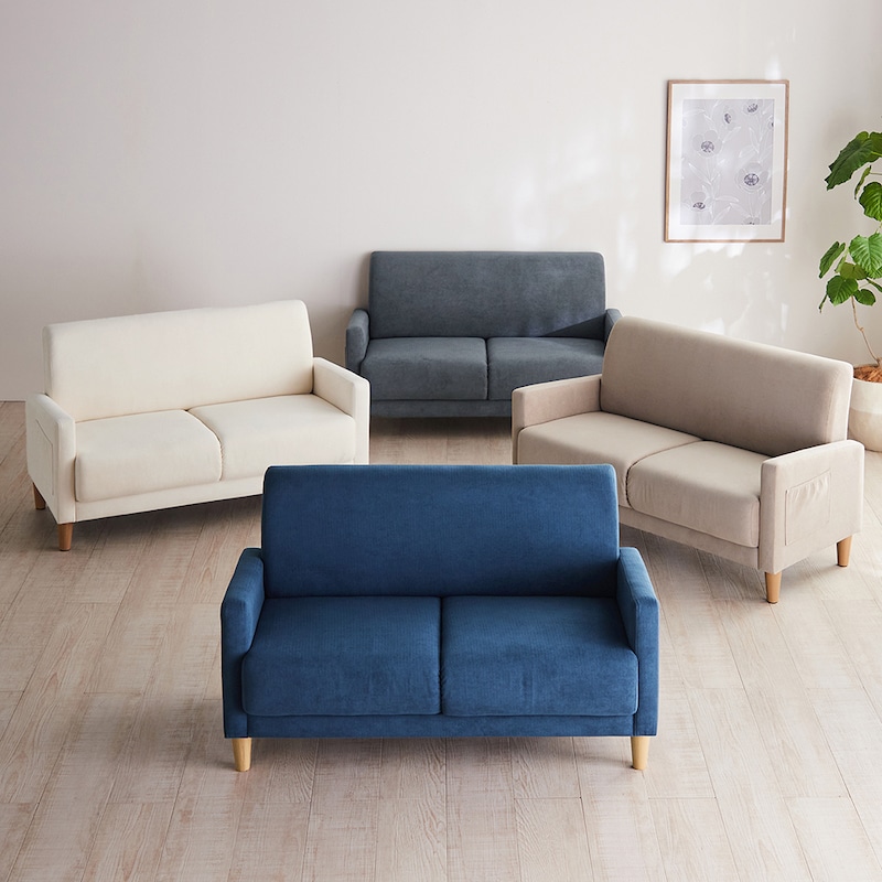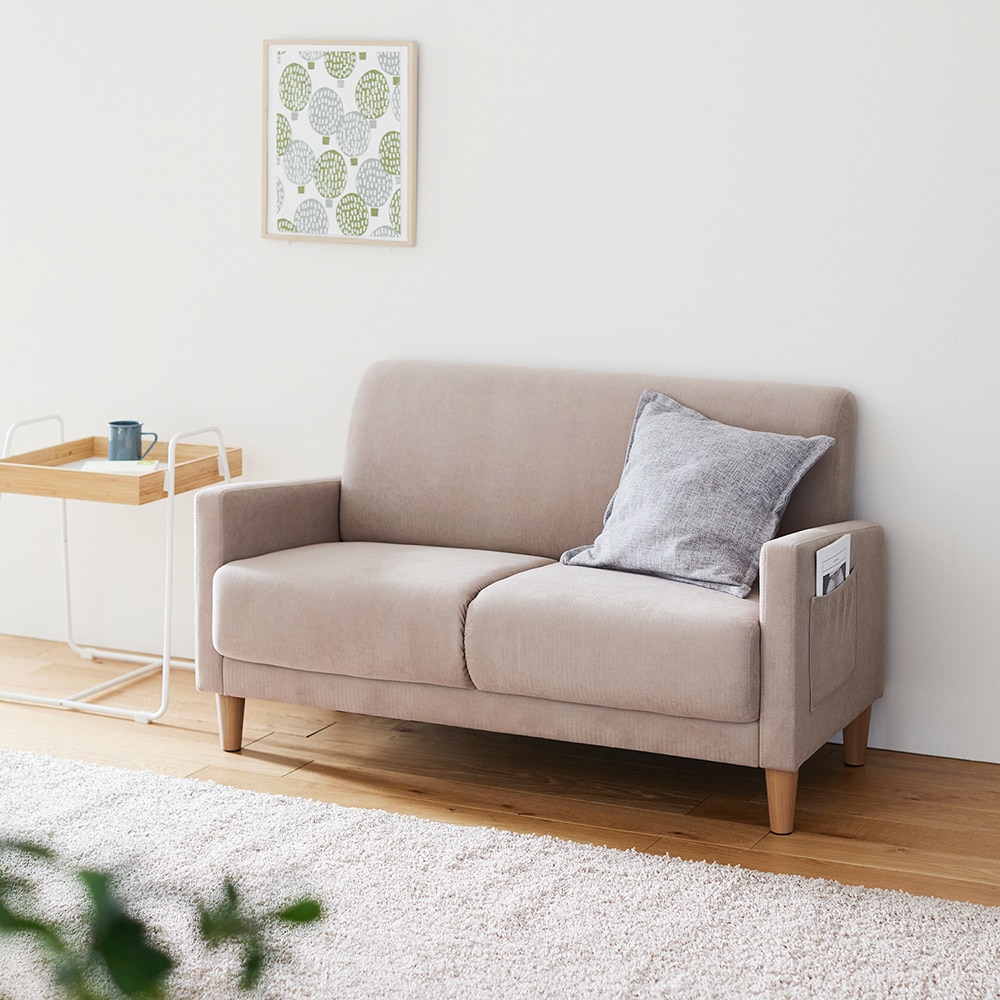 タイムセール、さらに大型商品送料無料で、かなり安く購入できました。現物を見ないでソファーを買ったのは初めてですが、軽くて動かしやすくコンパクト。狭めの部屋にちょっと置くのに丁度いい大きさで、色、素材感も気に入りました。