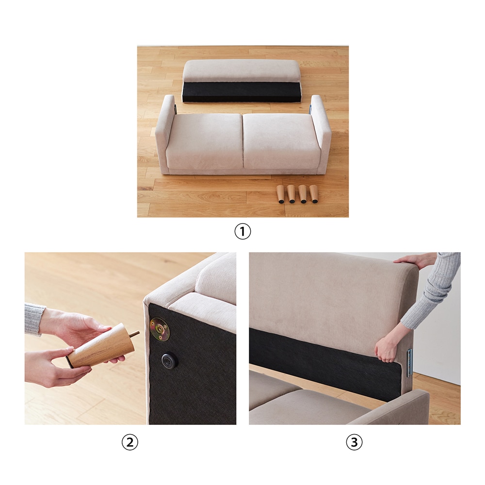 組み立ても背もたれと足を付けるだけで簡単。女性でも動かせるほどの重さなので掃除や模様替えをする時も楽チンでした。