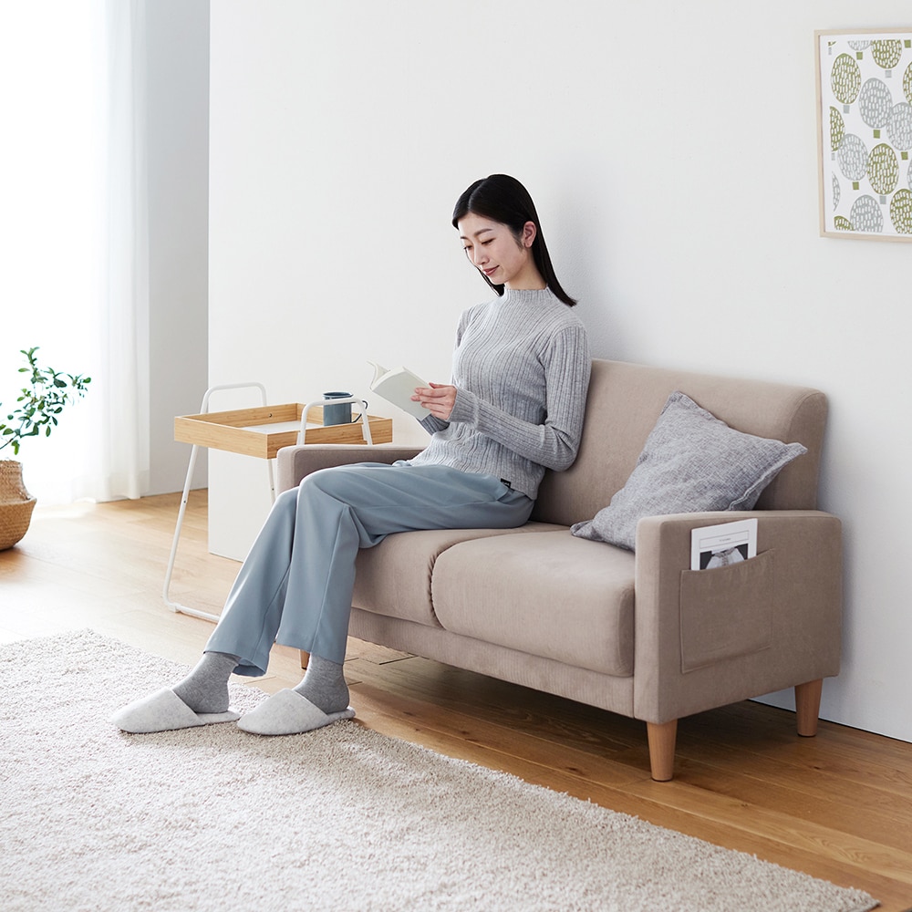 商品名は「コンパクトソファー」ですが、存在感はありつつ圧迫感はないので、我が家にピッタリなサイズのソファーです。