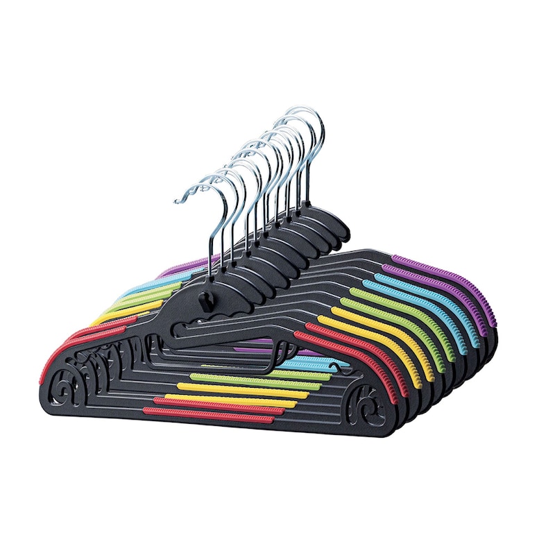 ●洗濯から収納までそのまま使える3カ所に滑り止め付きで衣類が落ちにくいカラフルな5色10本セット。