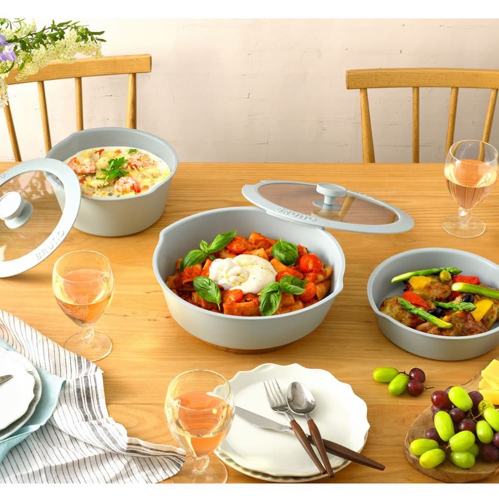 ●出来立てあつあつをそのままサーブでき、後片付けもラクラク。IH、ガス、オーブンに対応し、レシピの幅も広がります。