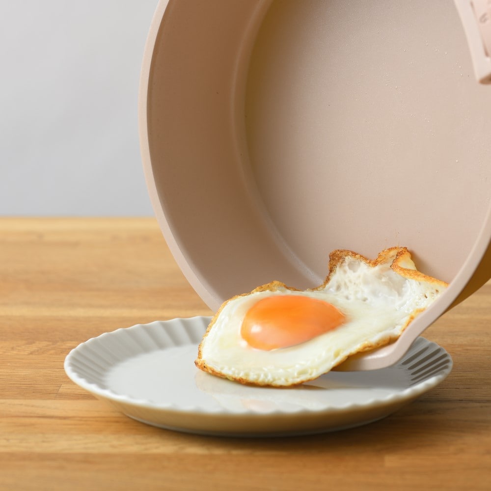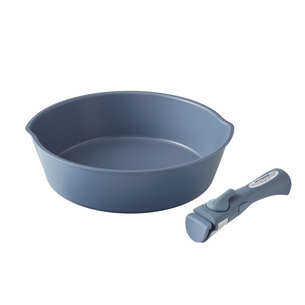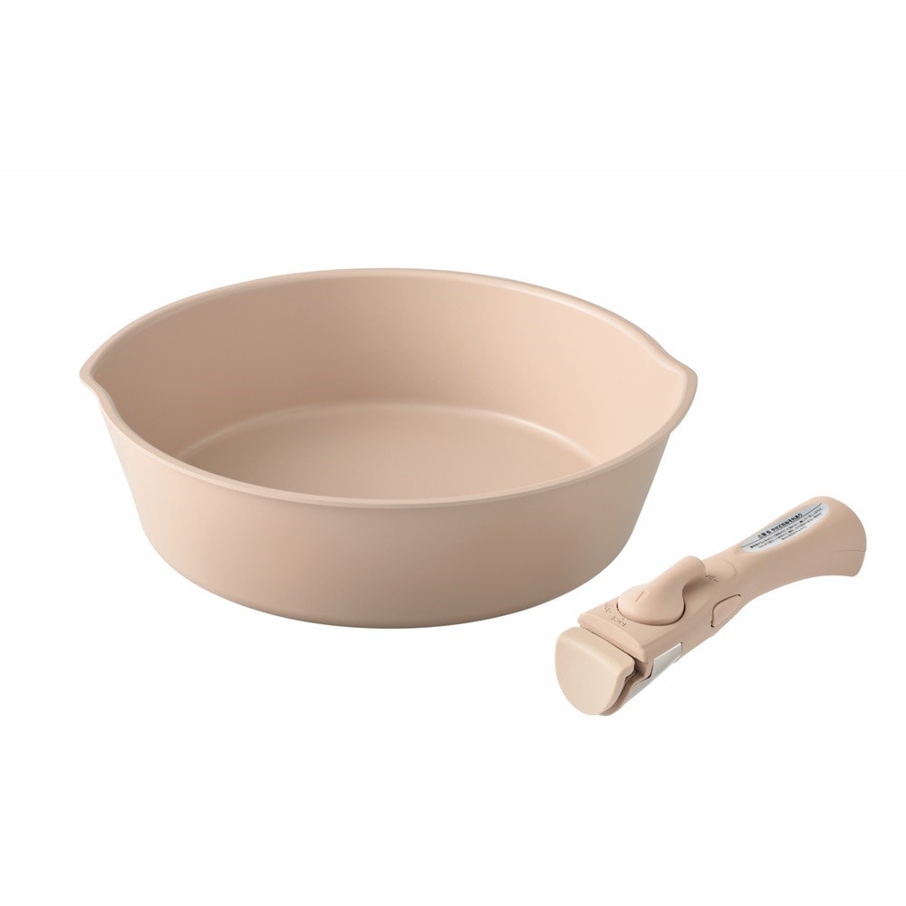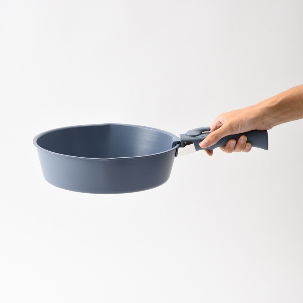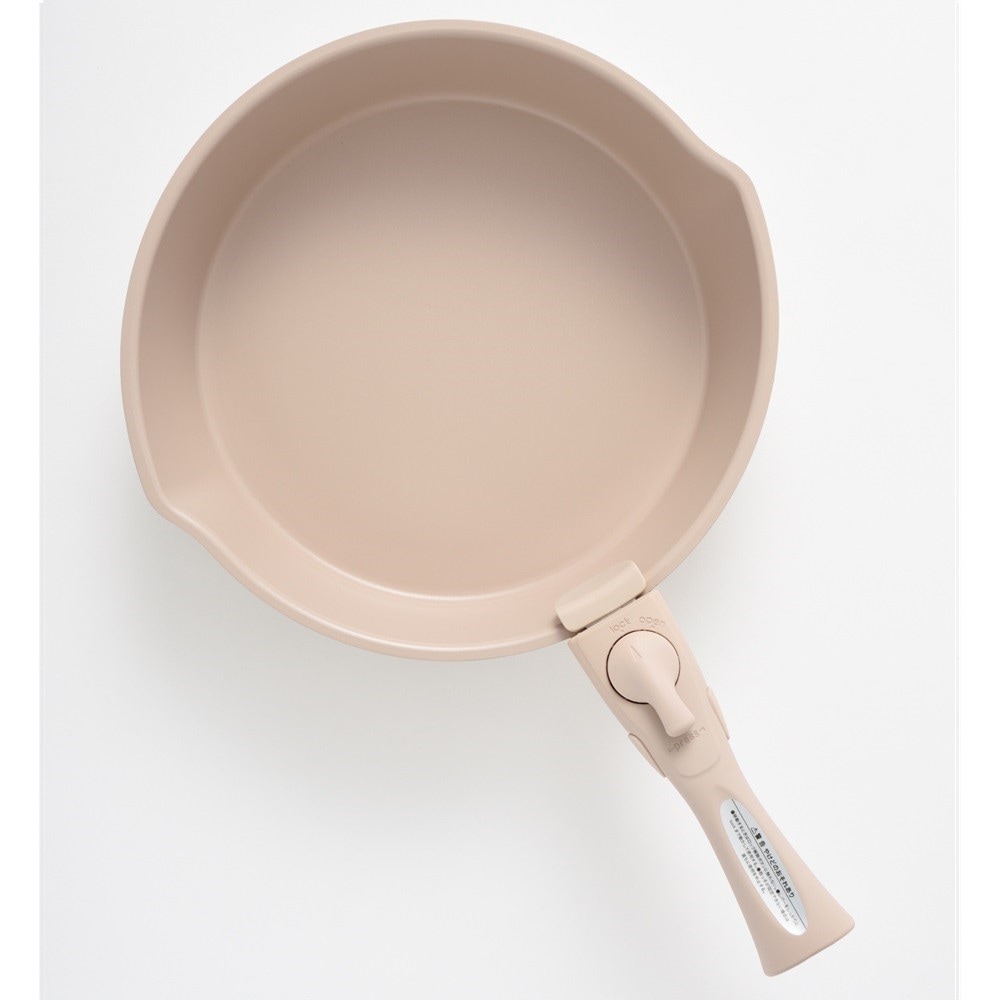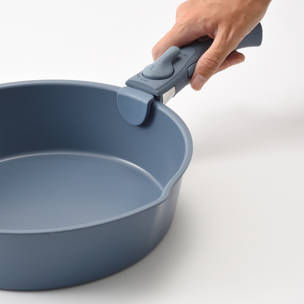 ●取っ手部分が取り外せるフライパンシリーズが登場しました。重ねてすっきり収納でき、冷蔵庫内での保存時も場所を取らずに便利。