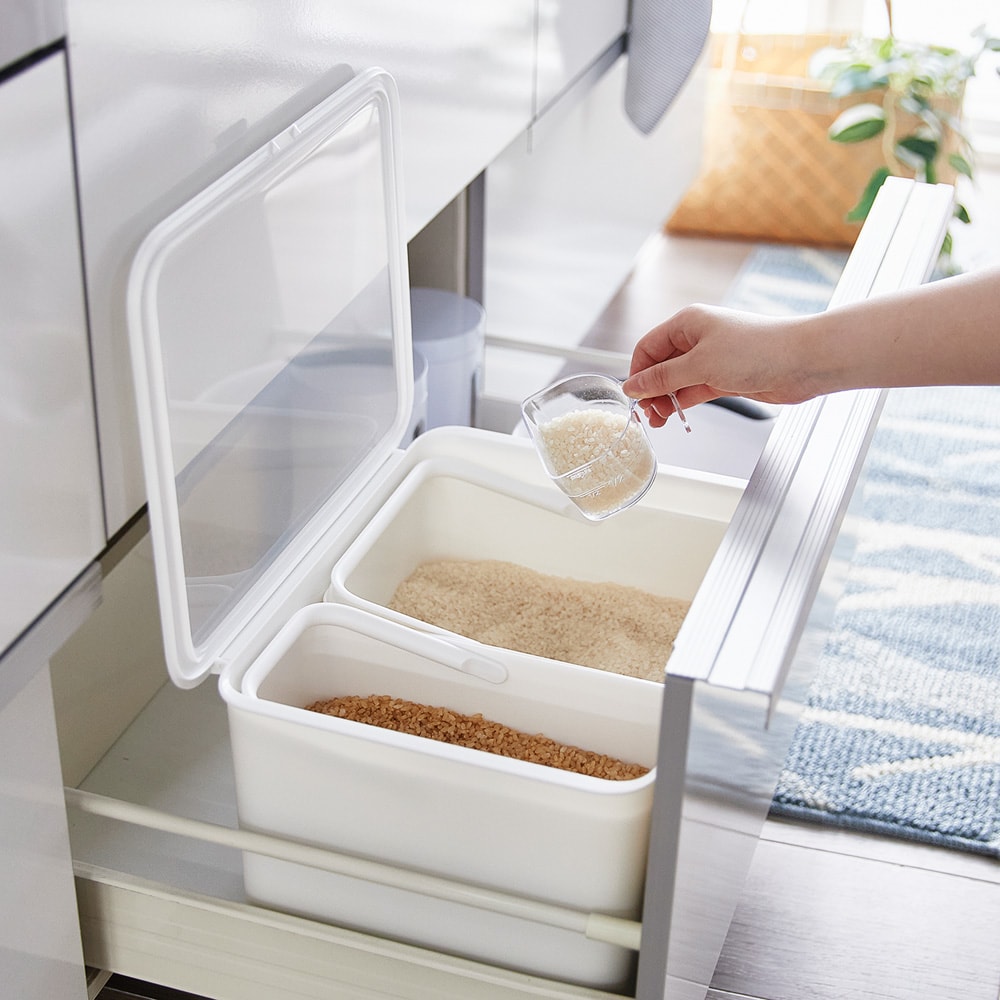 分別保存できる&中が見えるフタ付きストックケース【米びつ 収納】 <本体容量16L>