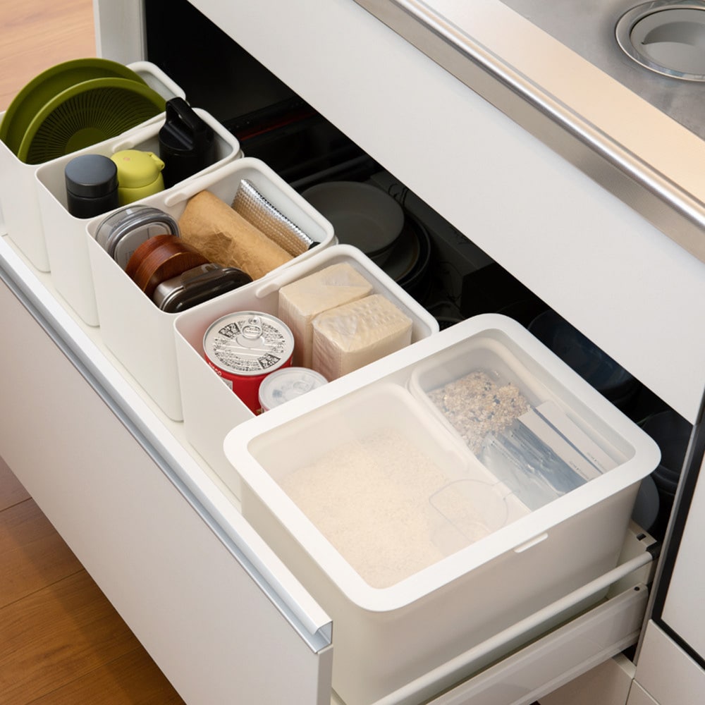 • 一般的なシステムキッチンの引き出しにすっきり収まるサイズで設計しました