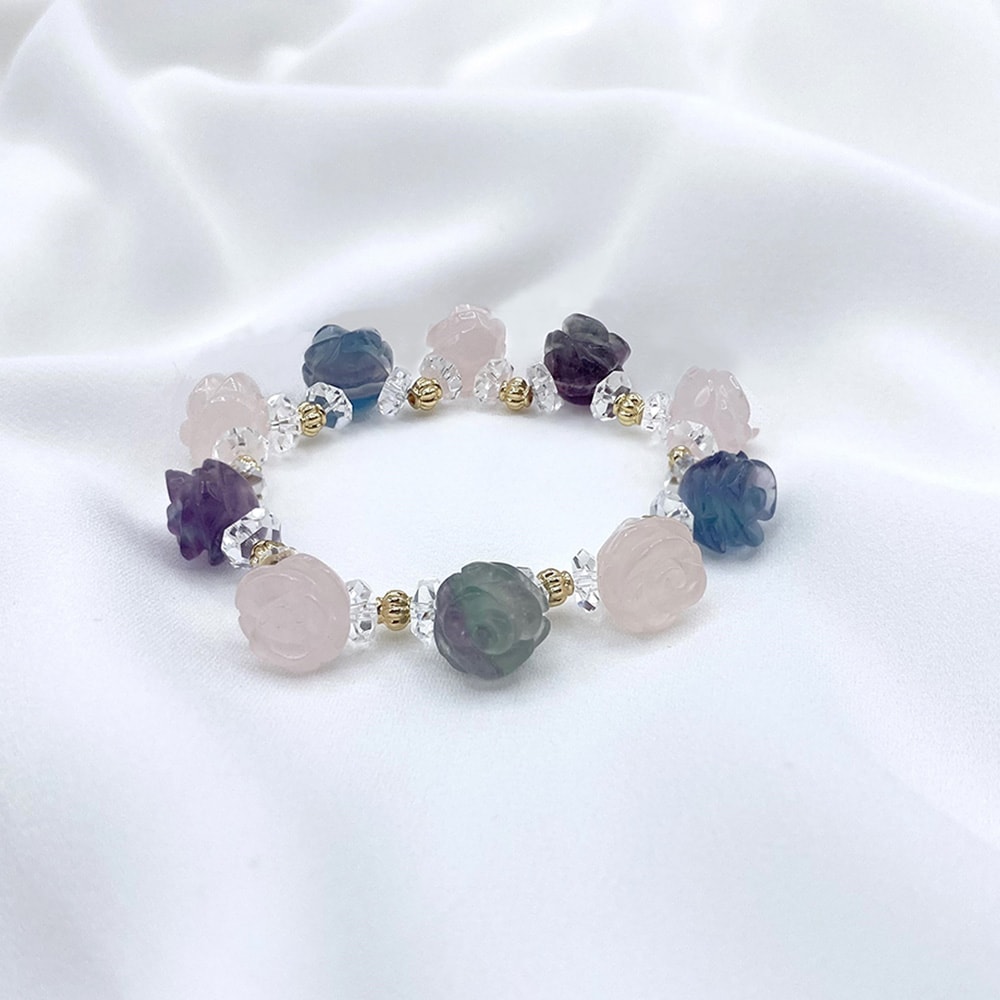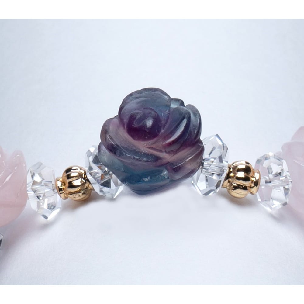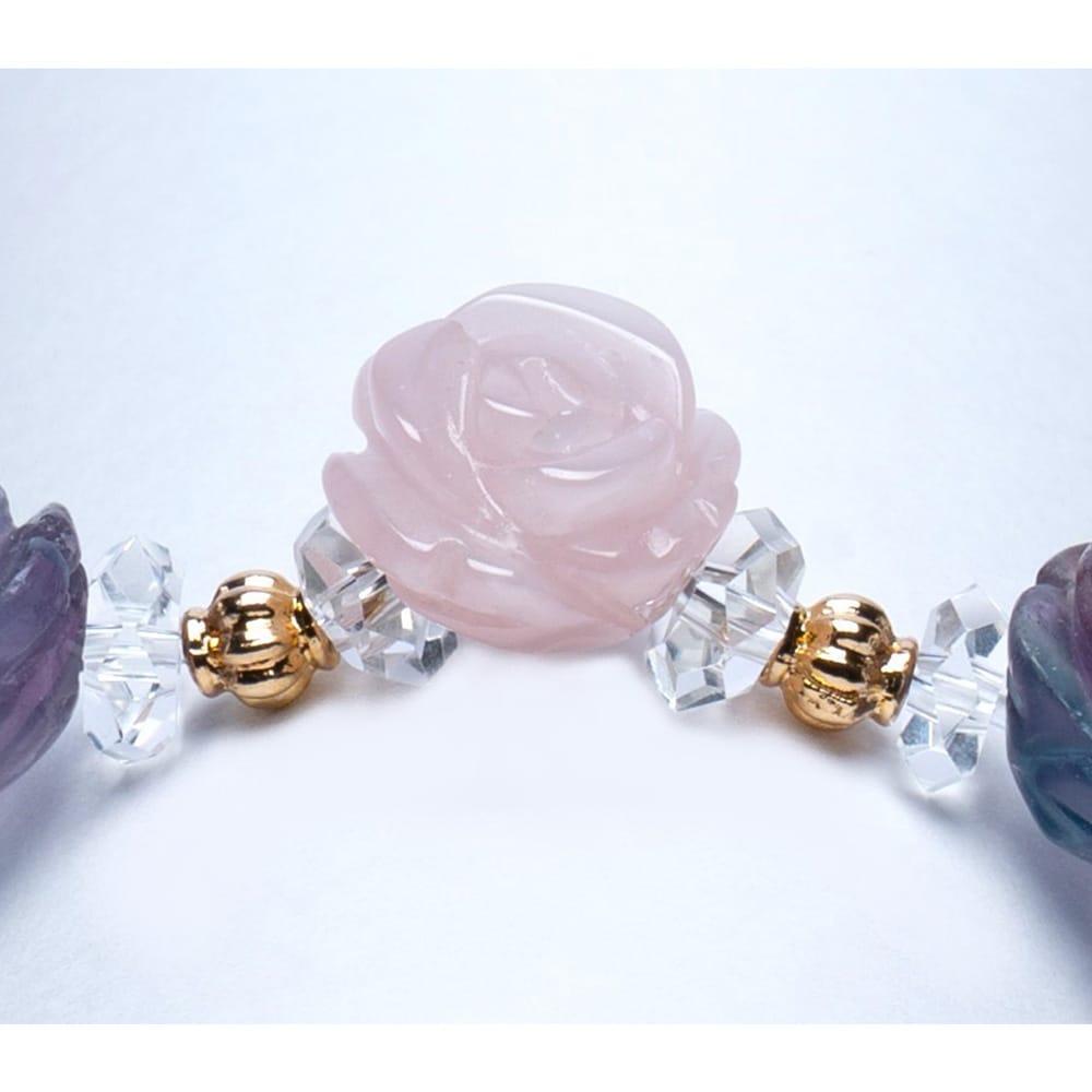 薔薇カットブレスレット <フローライト・ローズクォーツ>