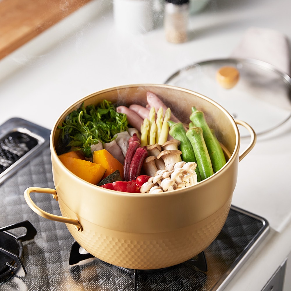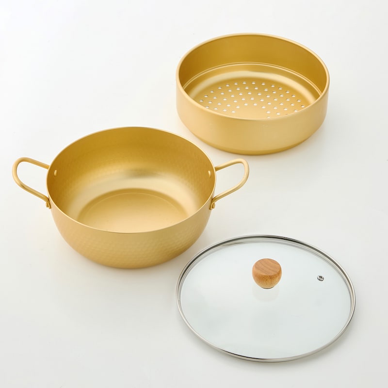 ●主材/上鍋・下鍋:アルミニウム合金、はり底:ステンレス鋼、フタ:強化ガラス