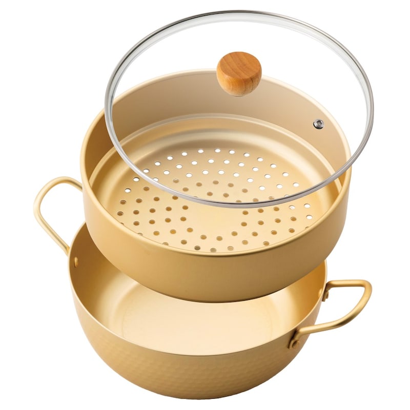 軽くてお手入れしやすいガラス蓋付き蒸し鍋<24cm>