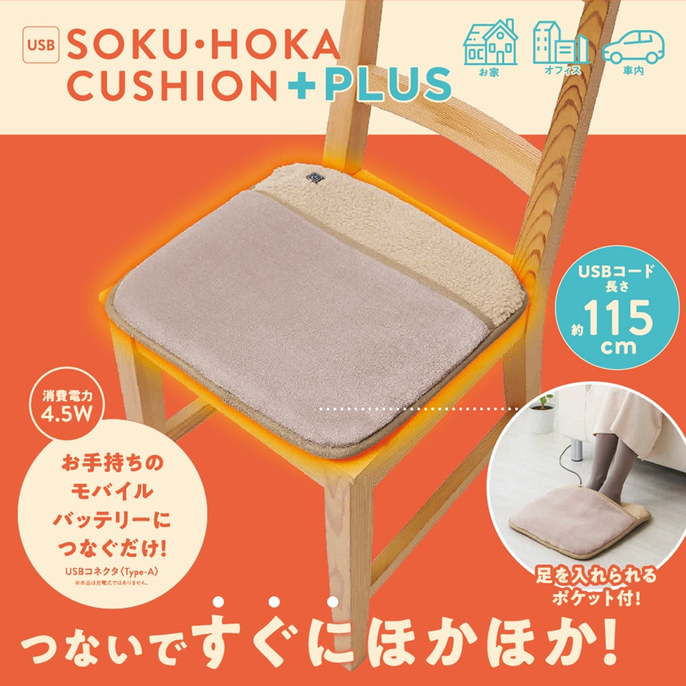 USBソクホカクッションプラス 【すぐに足元ぽかぽか!電熱クッション】