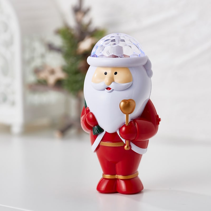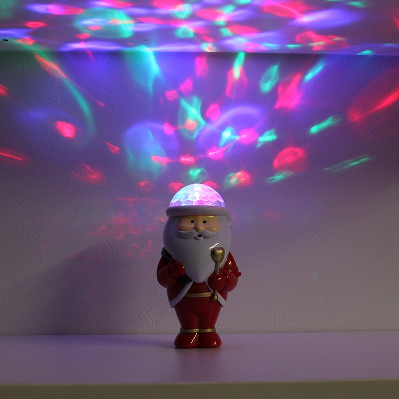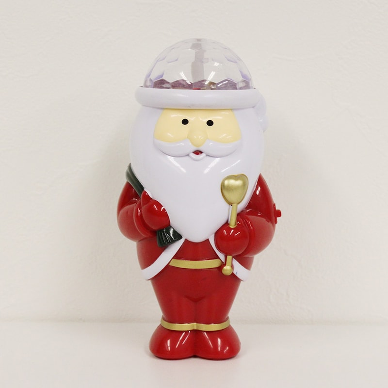 クリスマスの電飾の代わりに使えるかなと思い購入しました。サンタさんはかわいいく、置物としてだけでもお気に入りになりそう。頭のミラーボールは赤と青と緑の光が天井いっぱいにくるくる回り、ジングルベルの曲はちょっとかすれた声の昔風でしたが、お値段を考えるとお買い得品でした。ジングルベルの音量が割と大きく、音のボリューム調整ができればよりよかったです。