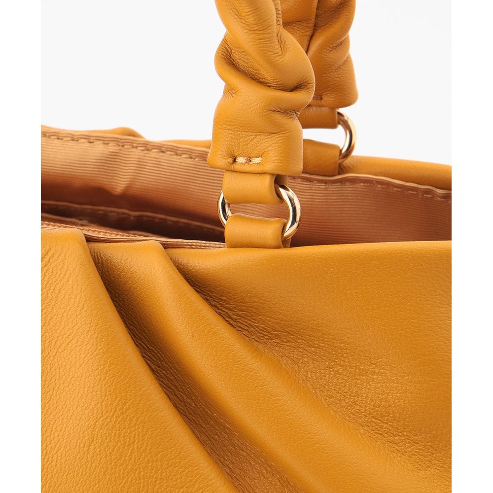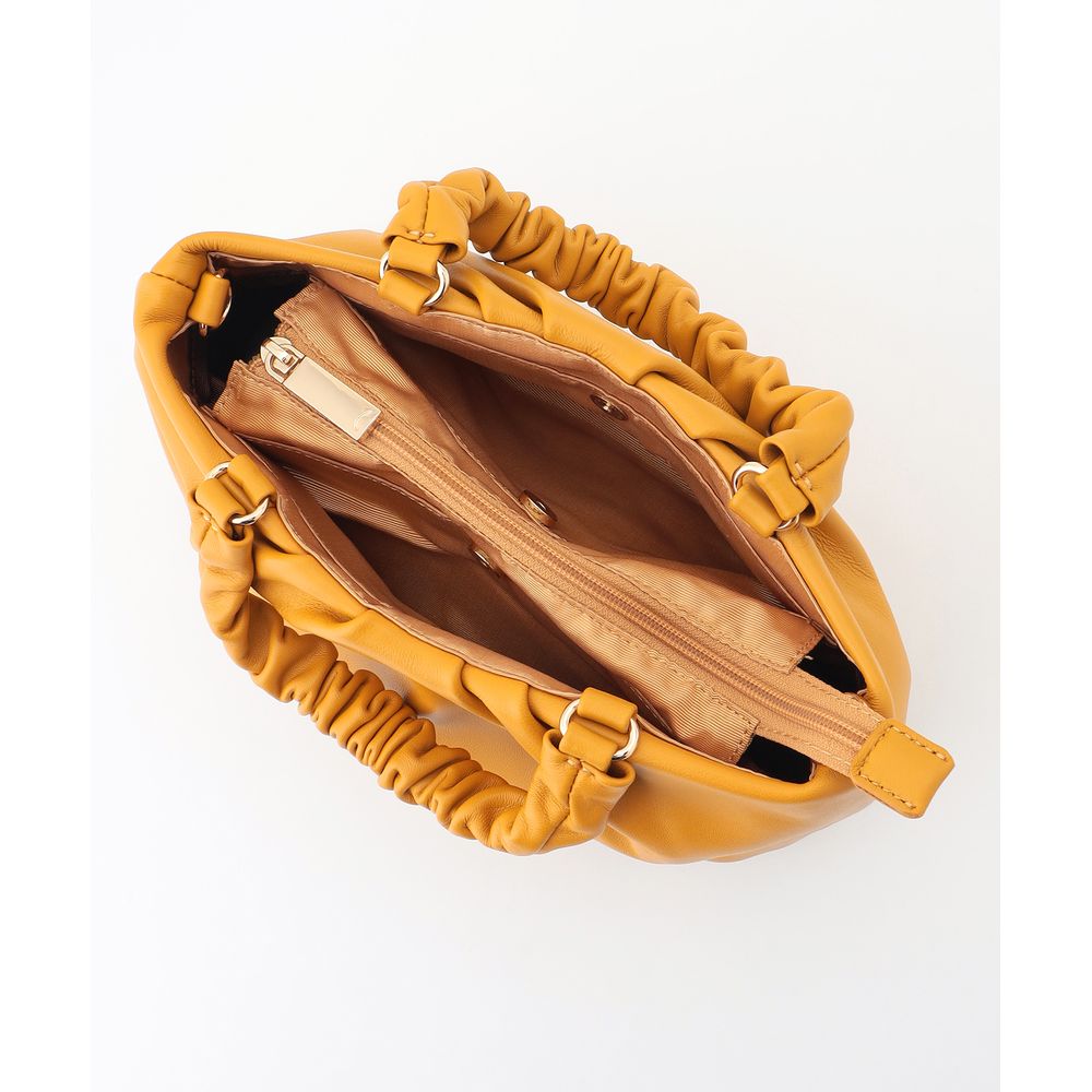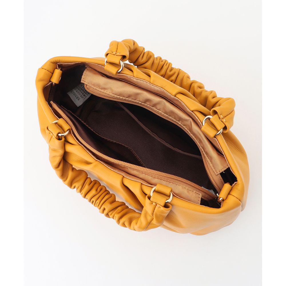 持ち手のシャーリングが可愛くて柔らかなシープ革で収納ポケットもたくさんあり使い勝手が良いです。