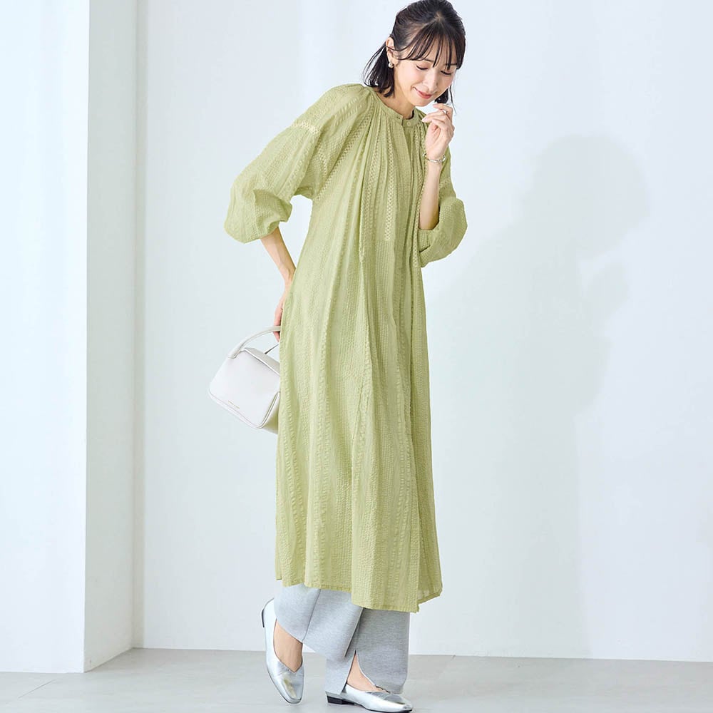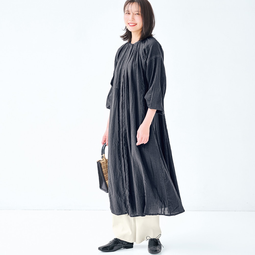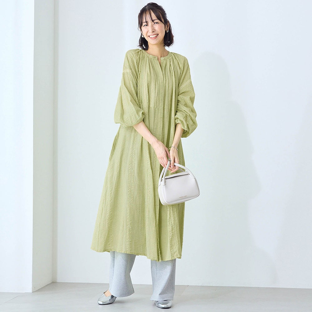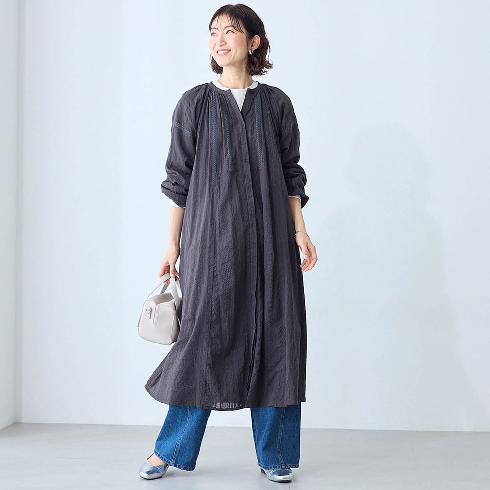 パンツスタイルに羽織るのにもワンピースとしても様になり着回せそうです。