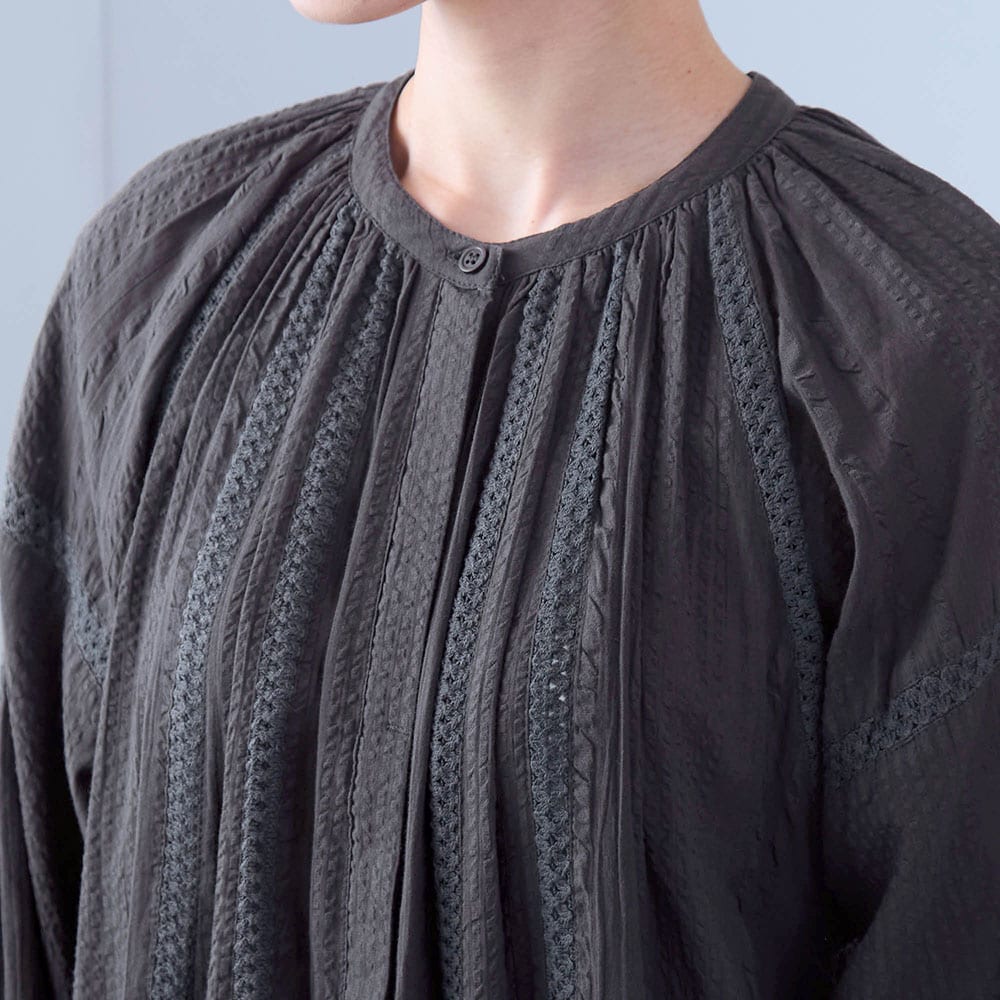 少し濃く落ち着いた色合いで更にゆるゆるに着こなすなら大きいサイズが良いかも両腕を上げると背後が突っ張る感じするから確認するとレースが斜めに縫い付けてありお洒落で可愛いんだけど動きが少し制限されます。