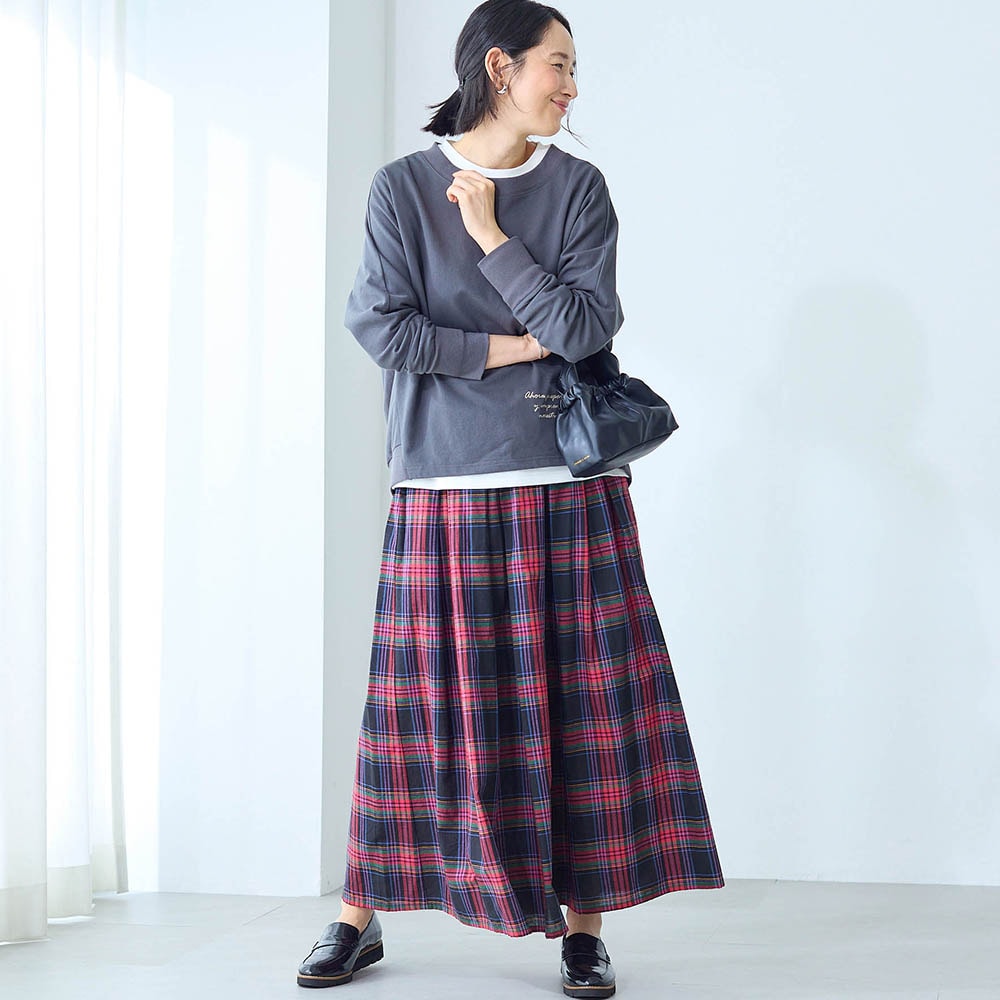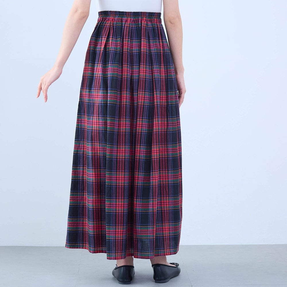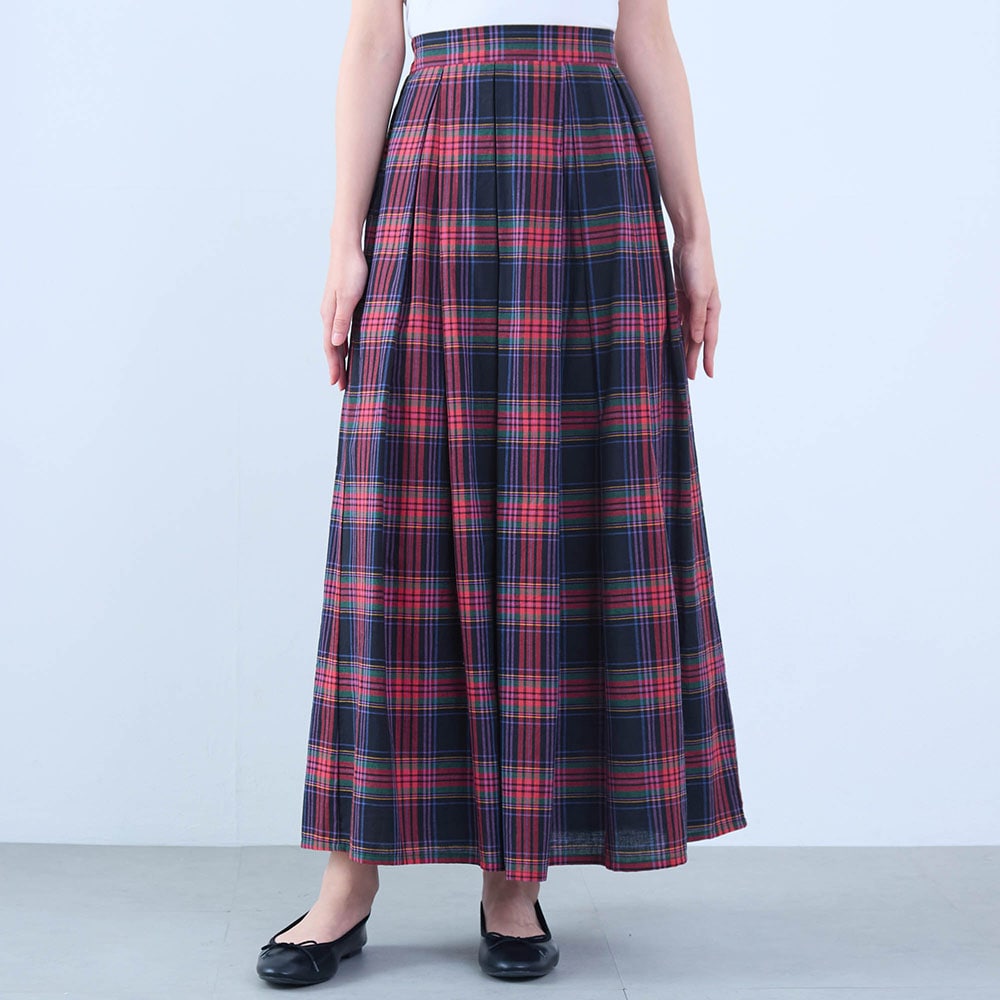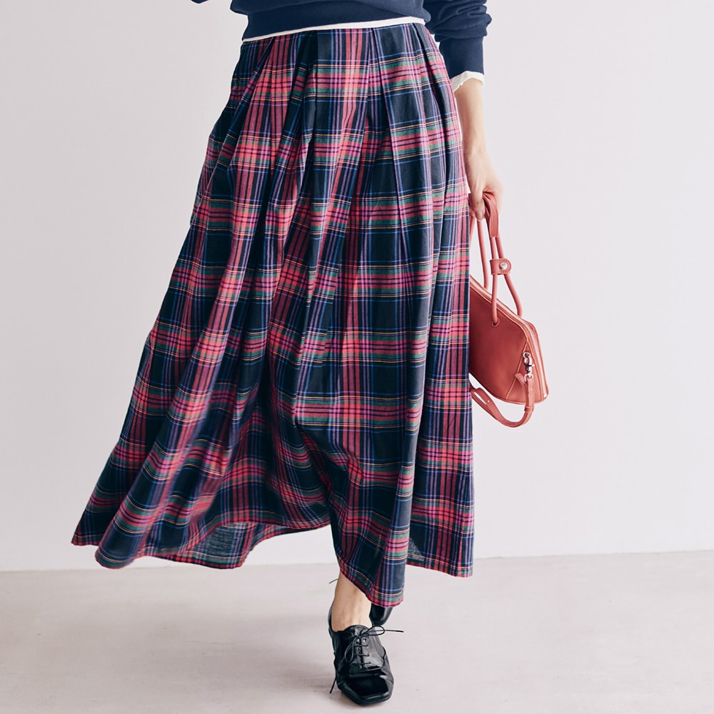 赤メインのチェックスカートは子どもっぽくなりがちですが、これは大人っぽい色合いで素敵でした。綿素材なのもありがたいです。靴下やタイツ等で1年中着られると思います。