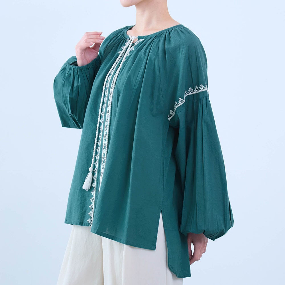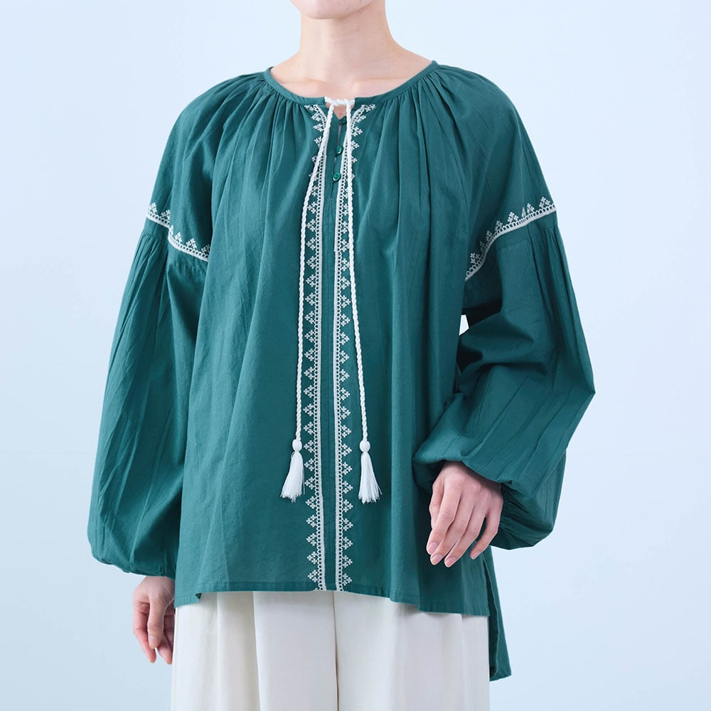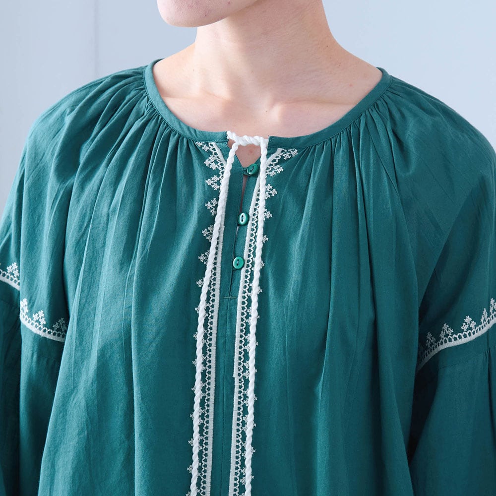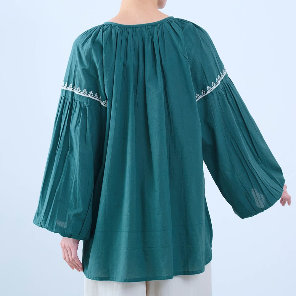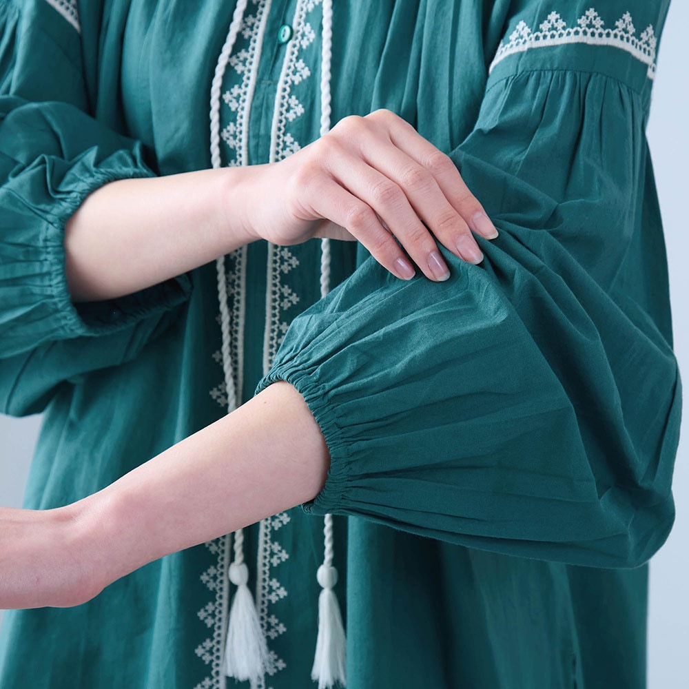 綿ローンは以前から好きで、夏のお洋服としては重宝なので、購入しています。黒を購入。黒と白のコントラストの刺繍、素材、ふわっと着られるデザインで購入を決定しました。試着のみしました。これからの季節使えそうです。