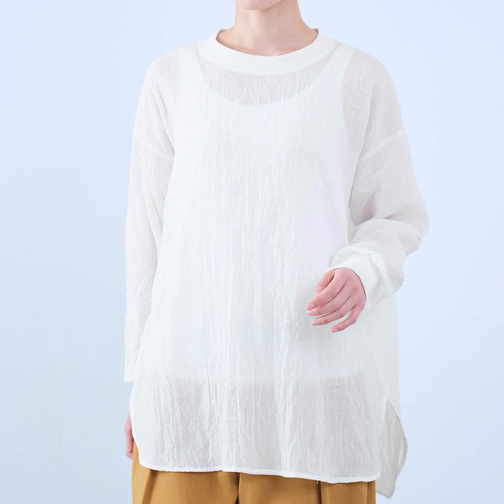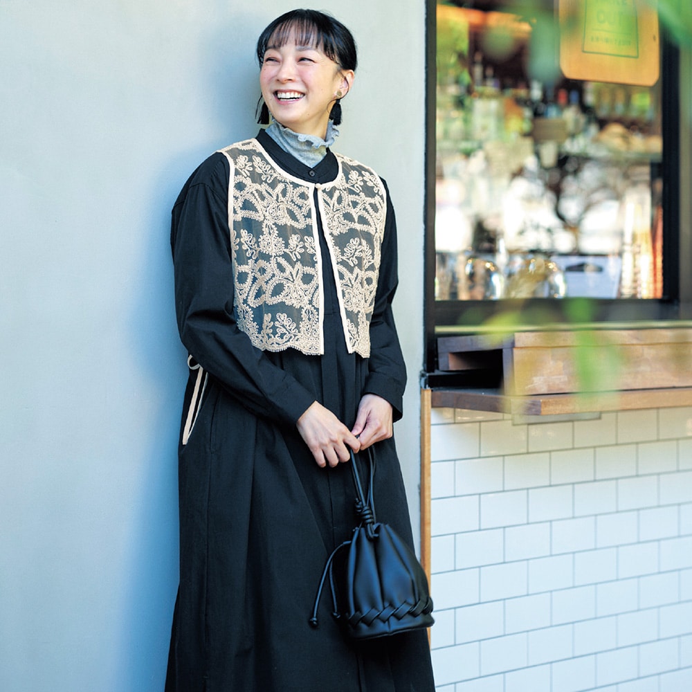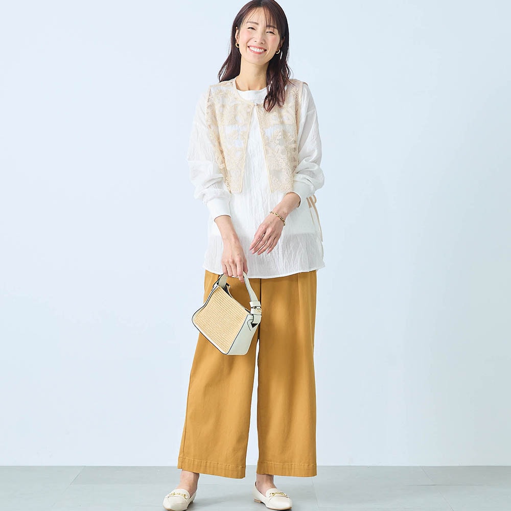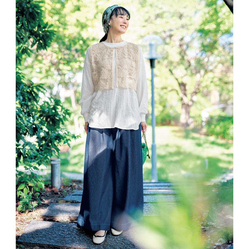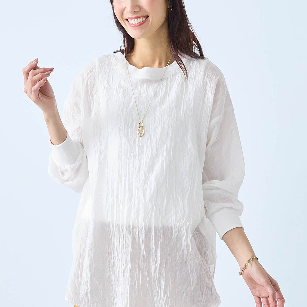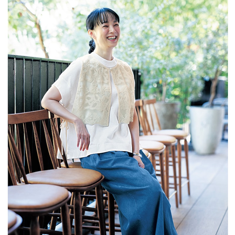 旬のレイヤードが楽しめるシアーなアンサンブル