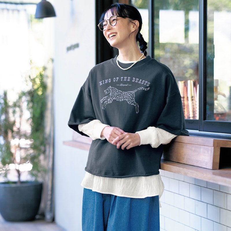 ・レイヤードも決まる6分袖
