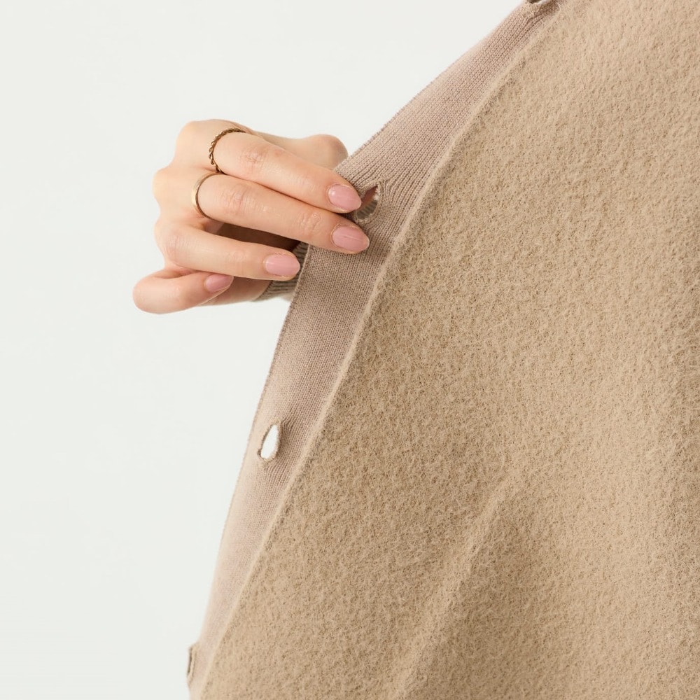 いつもベルメゾンをご利用いただきありがとうございます。 商品のご購入、ならびにレビューへのご投稿ありがとうございます。 商品を気に入っていただけましたのに、袖に糸の飛び出しがあり、残念な思いをさせてしまいましたこと、誠に申し訳ありません。 本来であれば、検品を徹底し、完璧な状態で交換品をお届けするべきところ、交換できる在庫がなく、お客様にご自身での補修を考えさせてしまうような事態を招き、深くお詫び申し上げます。引っかけ部分のお修理が必要な場合は工場でお修理をさせていただくことも可能ですので、お申し出いただければ幸いです。 今回のような糸の飛び出し(引っかけ)を見逃さないよう、仕入先にも連携し、検品体制を今一度厳しく見直します。いただきました貴重なご意見を真摯に受け止め、今後もお客様により満足度の高い商品をお届けできるよう、努力をしてまいります。貴重なご意見ありがとうございました。