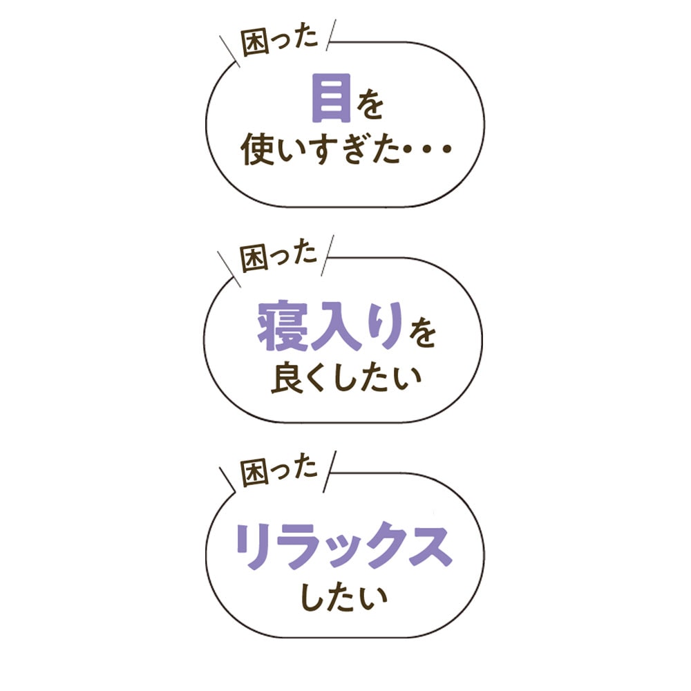 目の使いすぎやリラックスしたい、寝入りをよくしたい…といったお悩みをお持ちの方におすすめ。