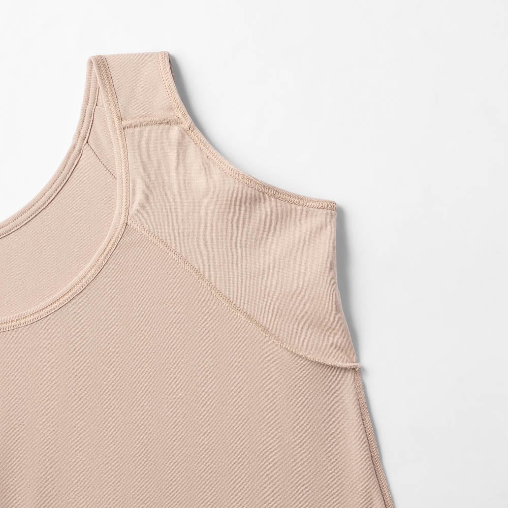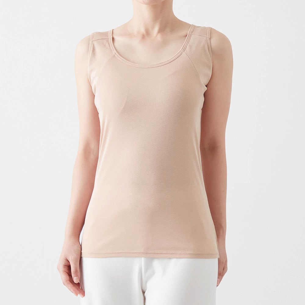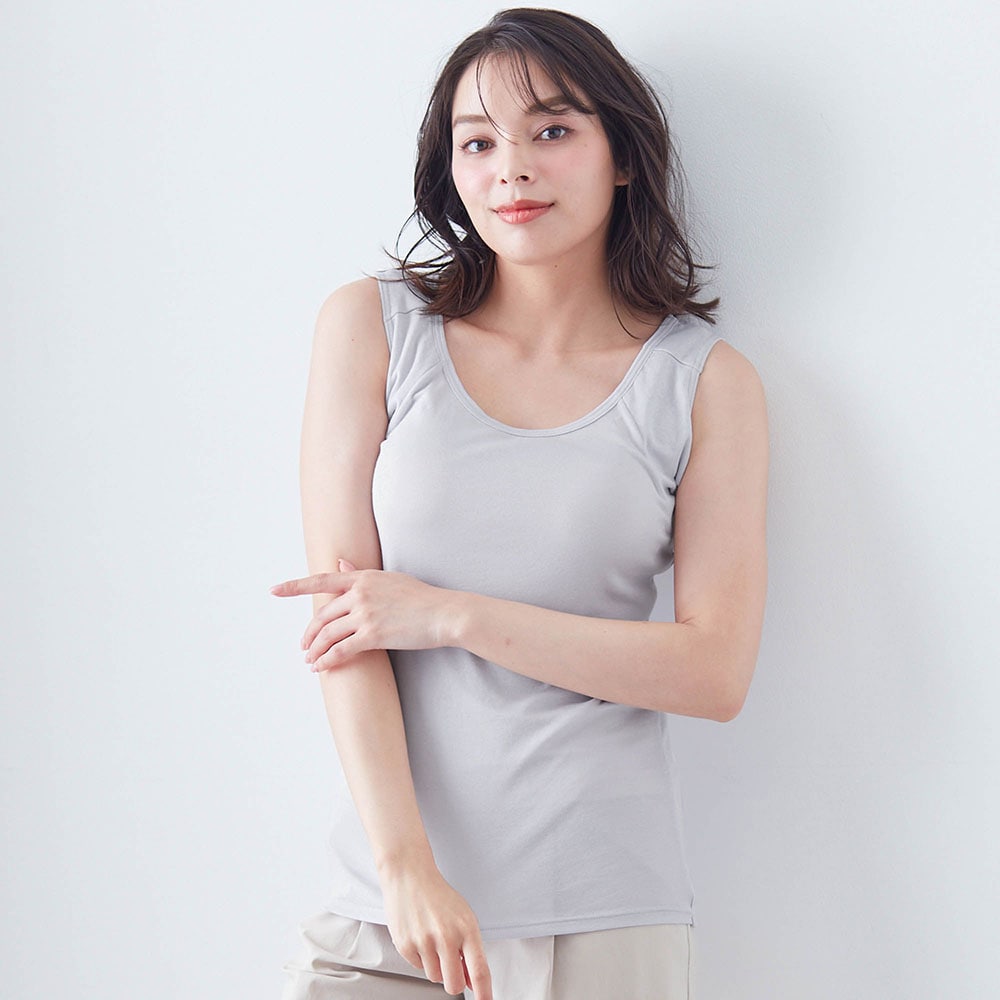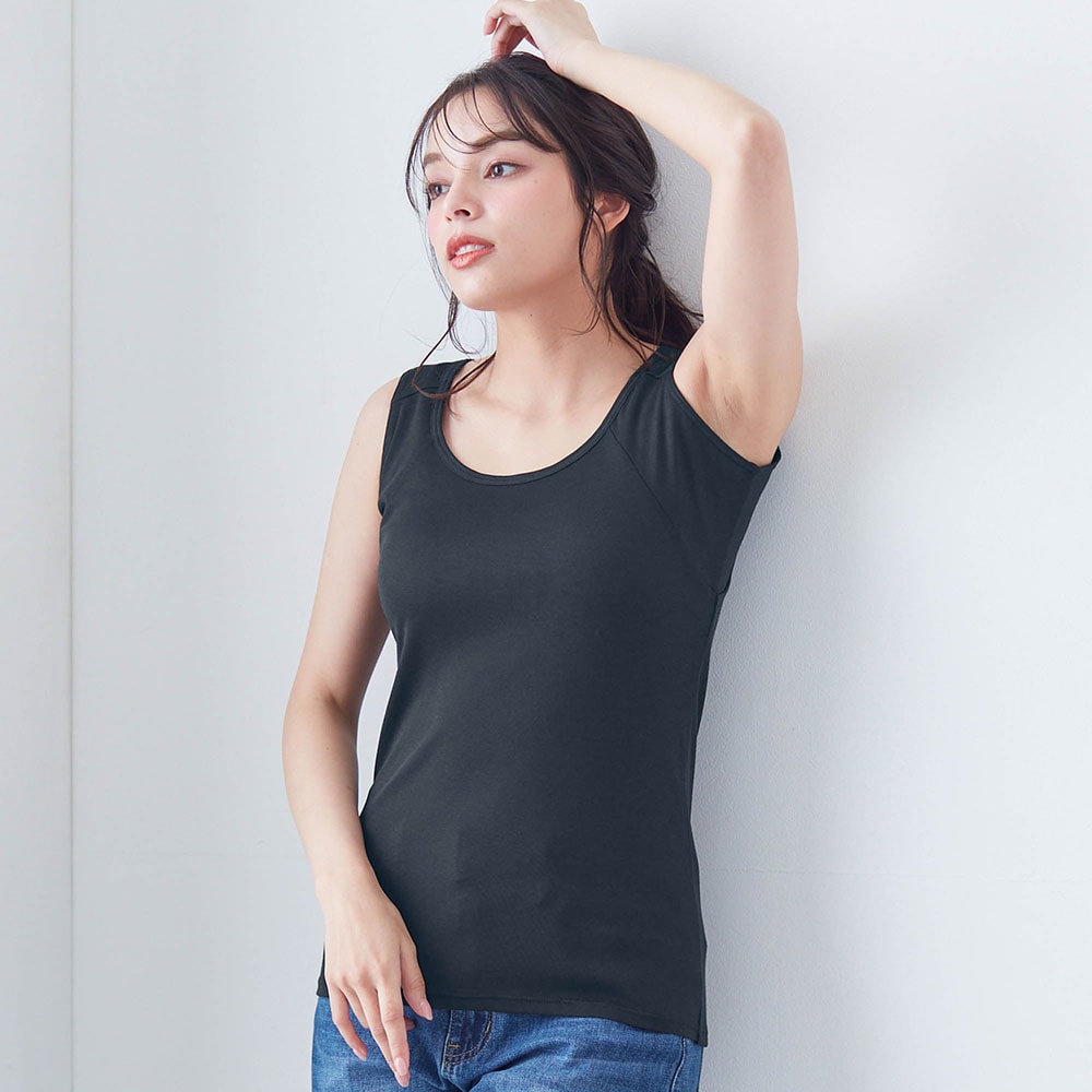何より脇汗が年中気になっています。このタンクトップは,今まで試した脇汗パット付きインナーの中で一番,脇にフィットします。汗をしっかりパットが受け止めてくれるので,服に汗が移りにくいのが嬉しいポイントです。肌触りは,レーヨン・ポリエステル素材でなめらか。そして綿も入っているので心地がいいです。一年中快適に着られそうです。