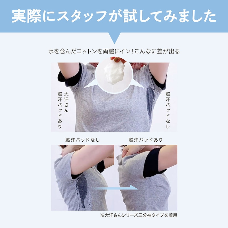 • 防水布入りの脇汗パッドで汗ジミを徹底ガード