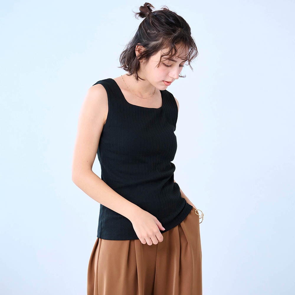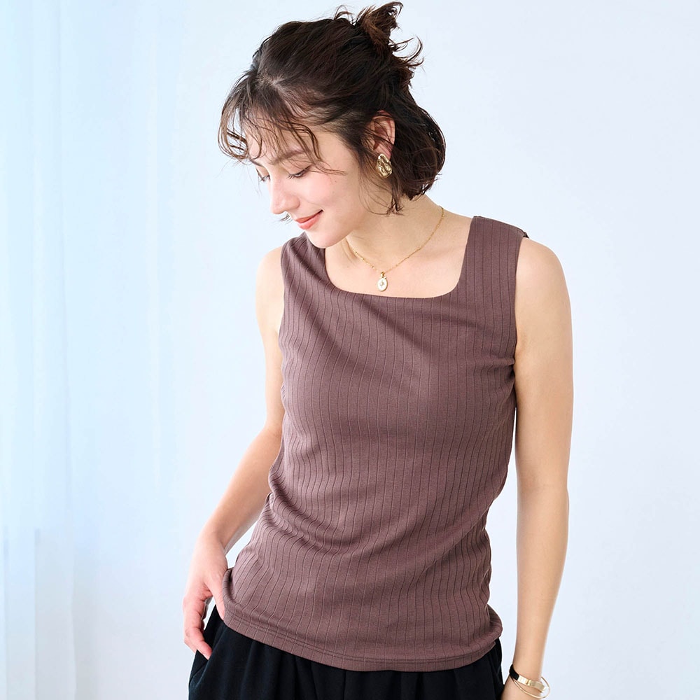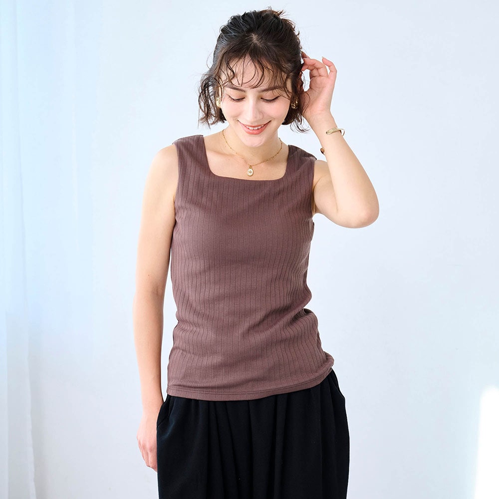 冷やしさらっとコットン・ワイドリブスクエアブラタンクトップ