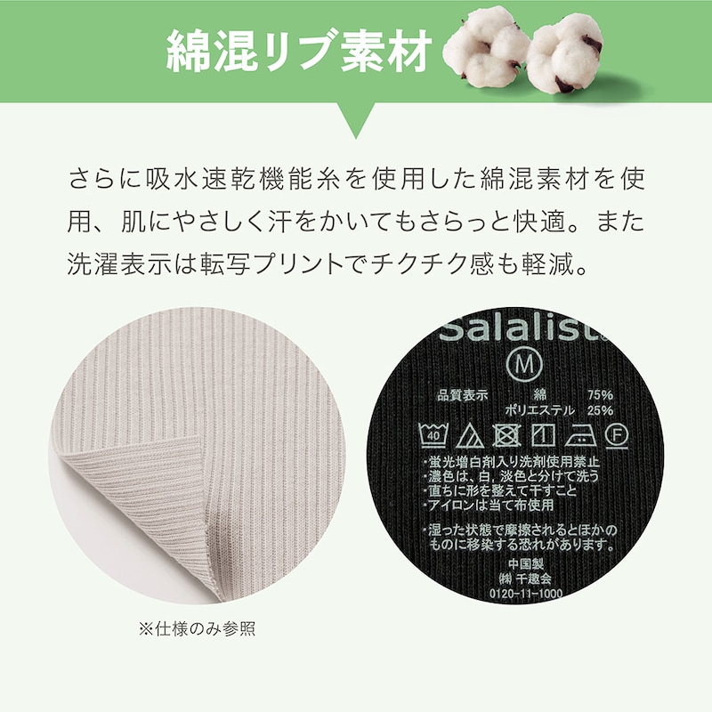 ●本体:ポリエステル55%、綿45%(針抜きフライス)、裏生地:綿67%、ポリエステル27%、ポリウレタン6%