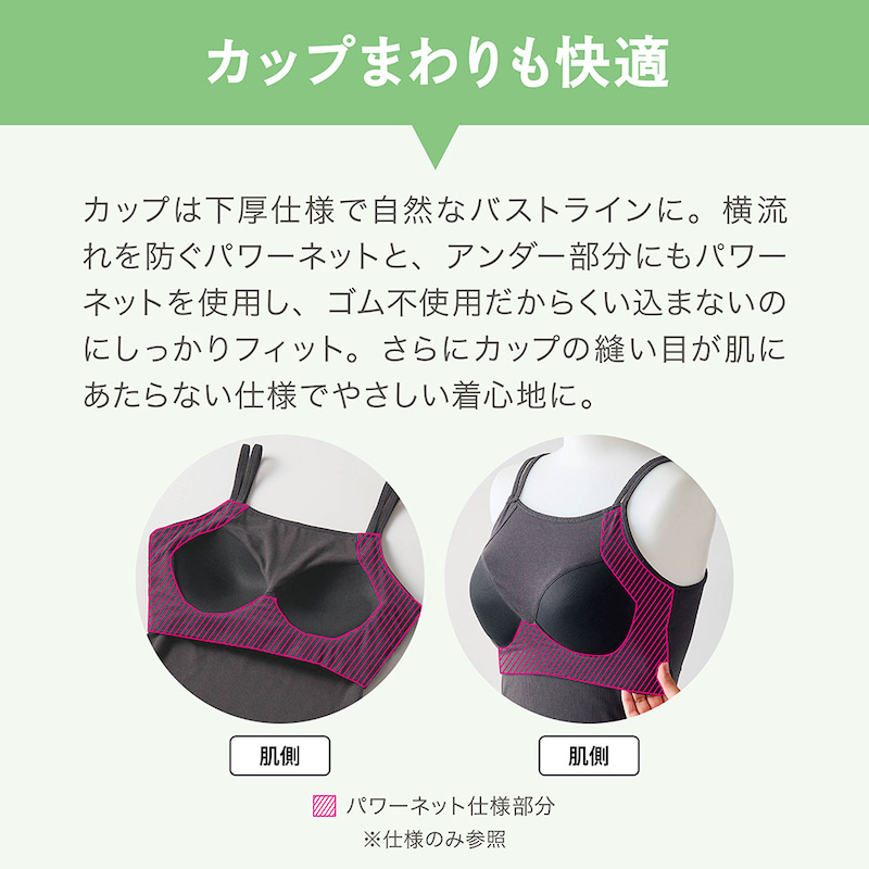 • カップは縫い付け仕様だから洗濯時のズレも気にならない