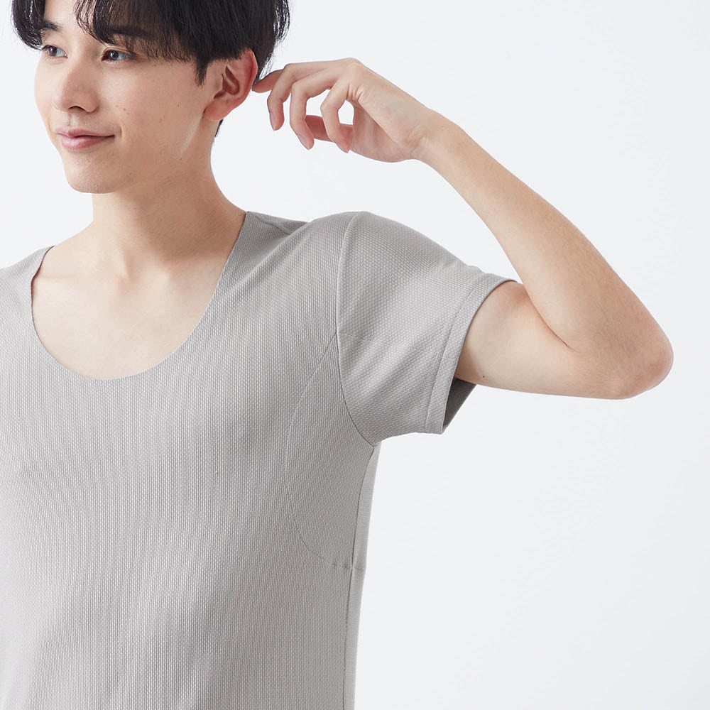 ・脇部分には身生地二重構造のパッドを内蔵し、脇下のべたつきを軽減