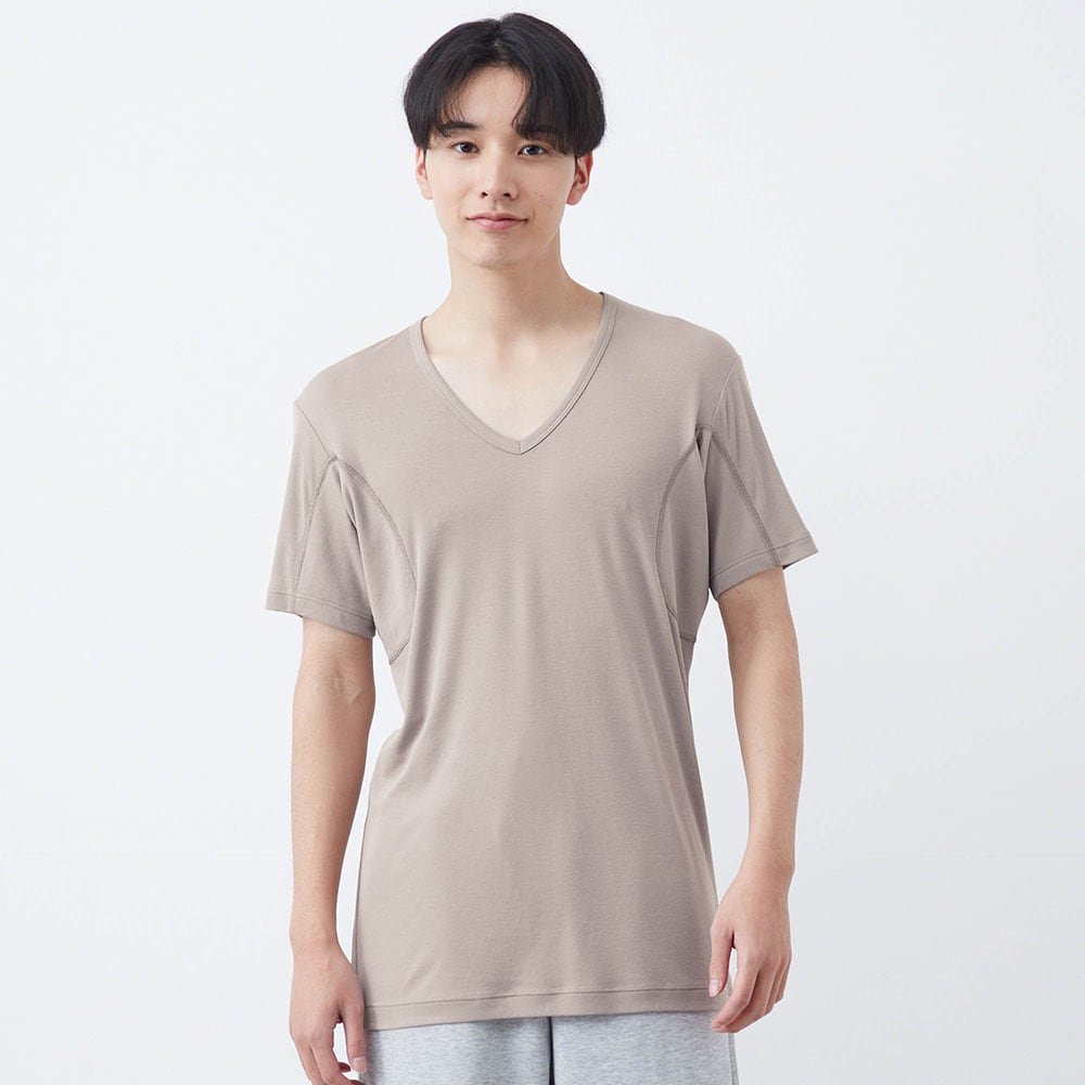 薄手のやわらかな綿レーヨン混に吸水速乾機能で暑い日でもサラッと快適