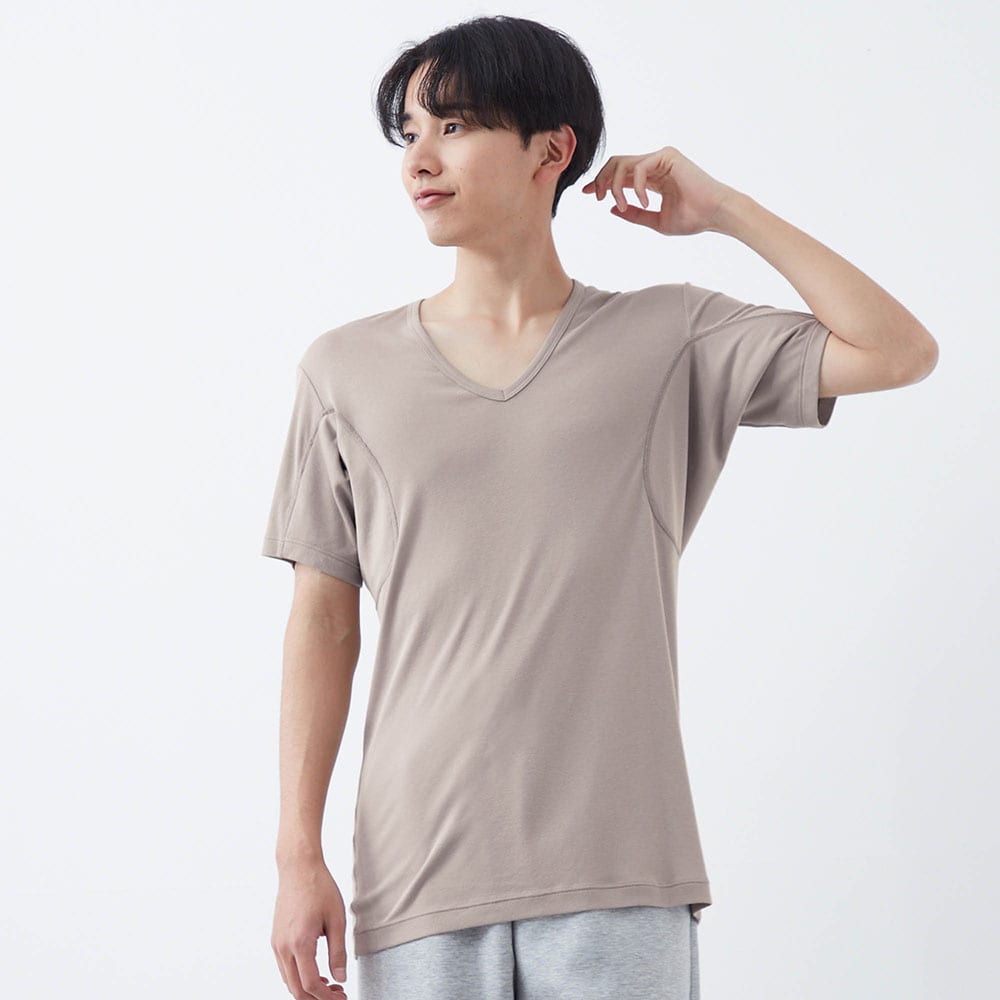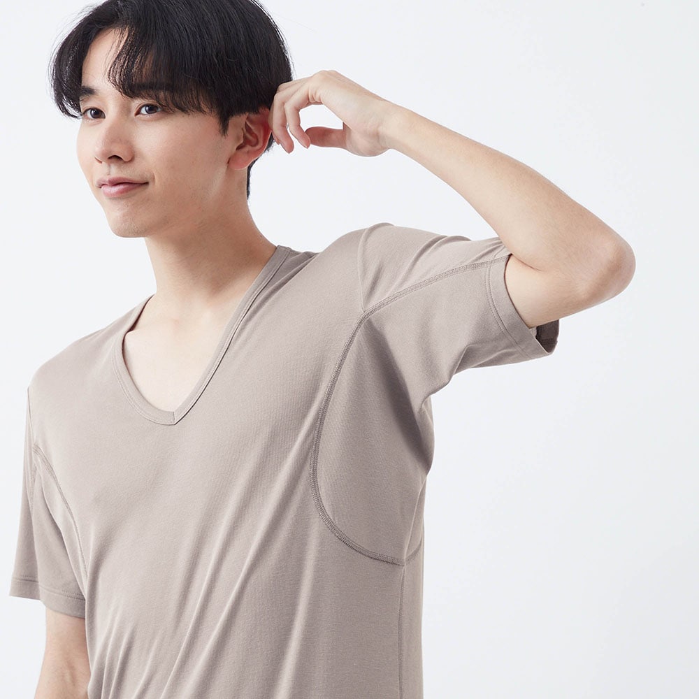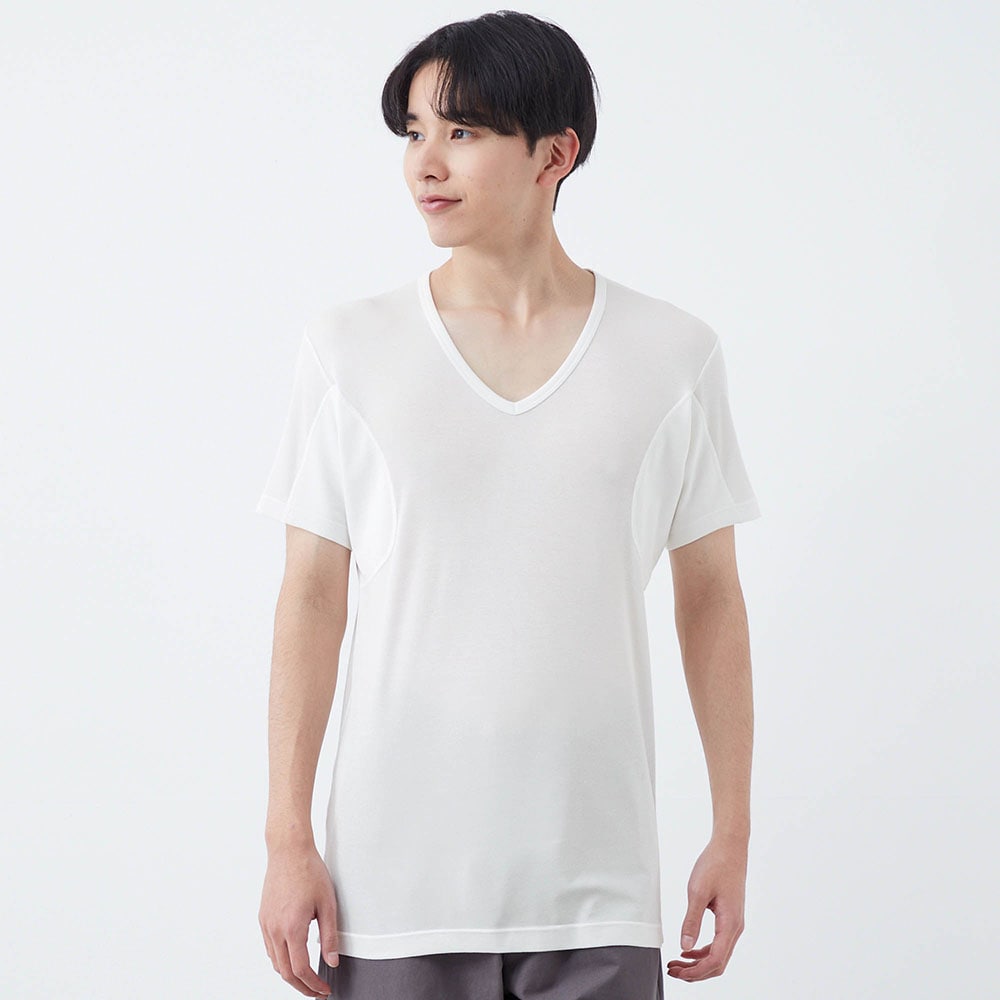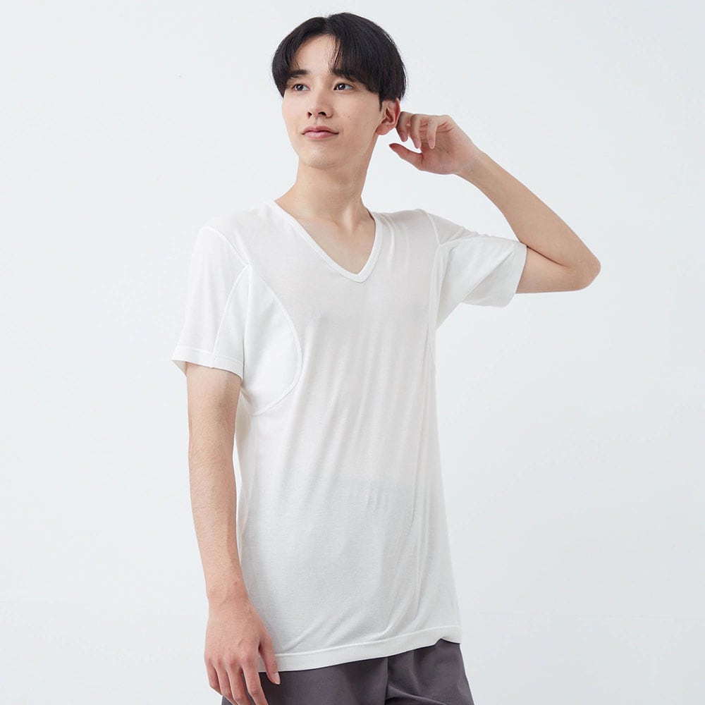 汗取りインナー・綿混背中二重 Vネック半袖メンズ(超大汗さん)