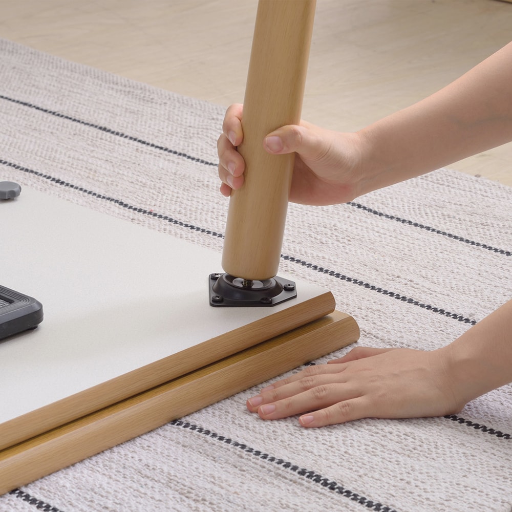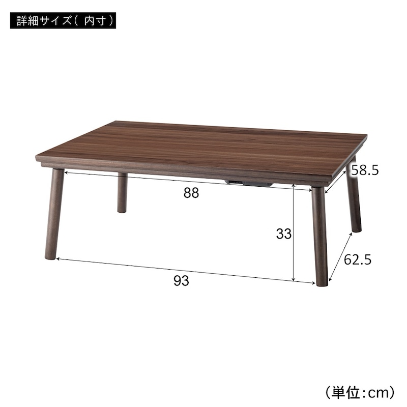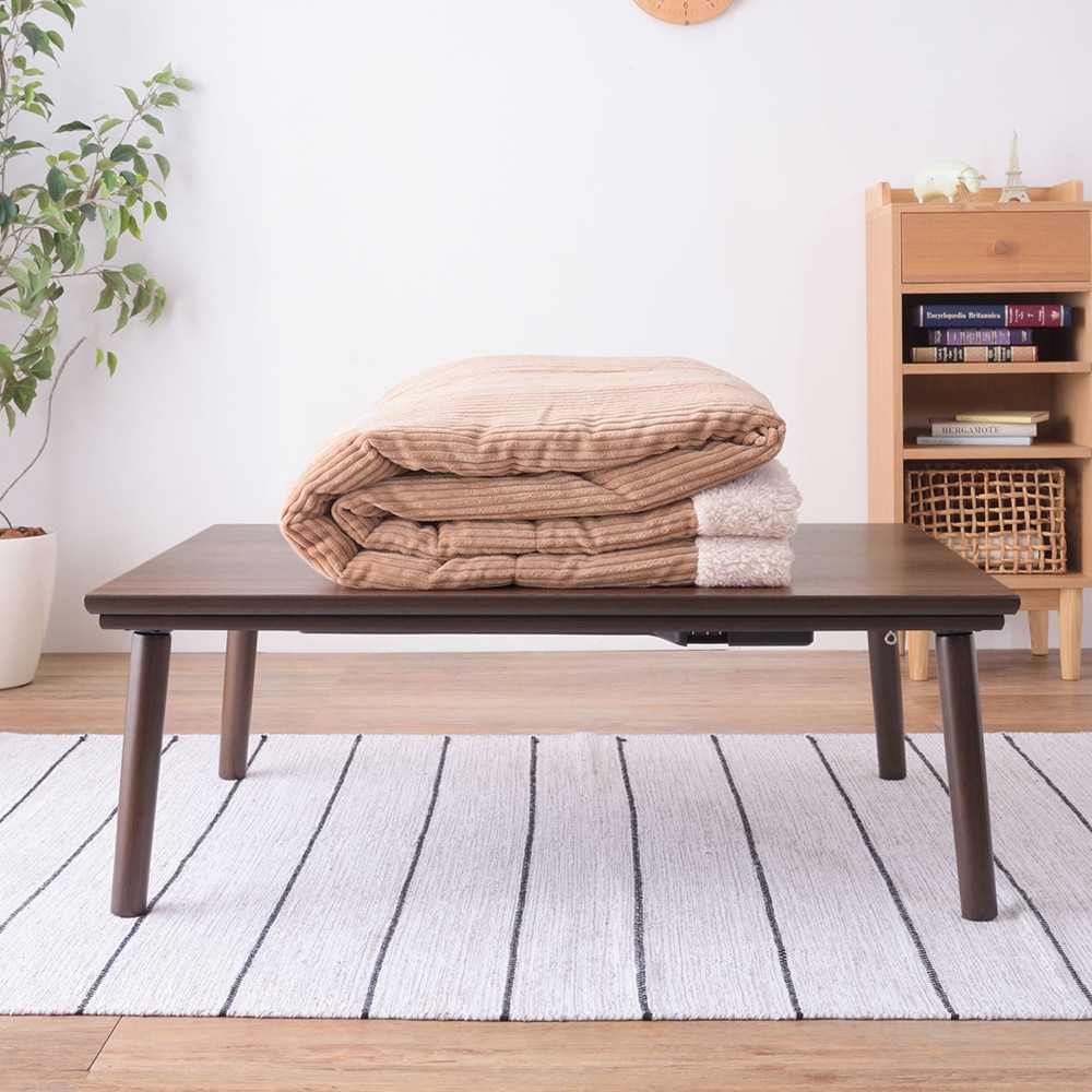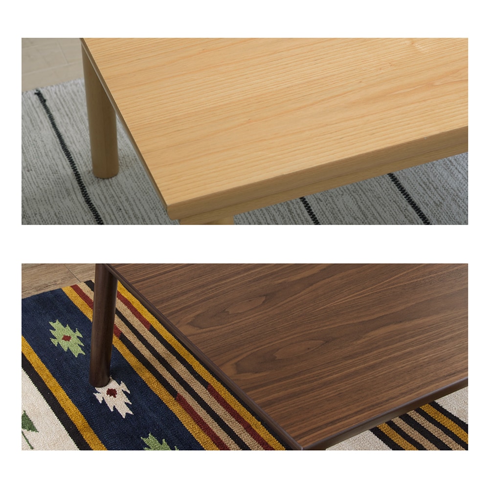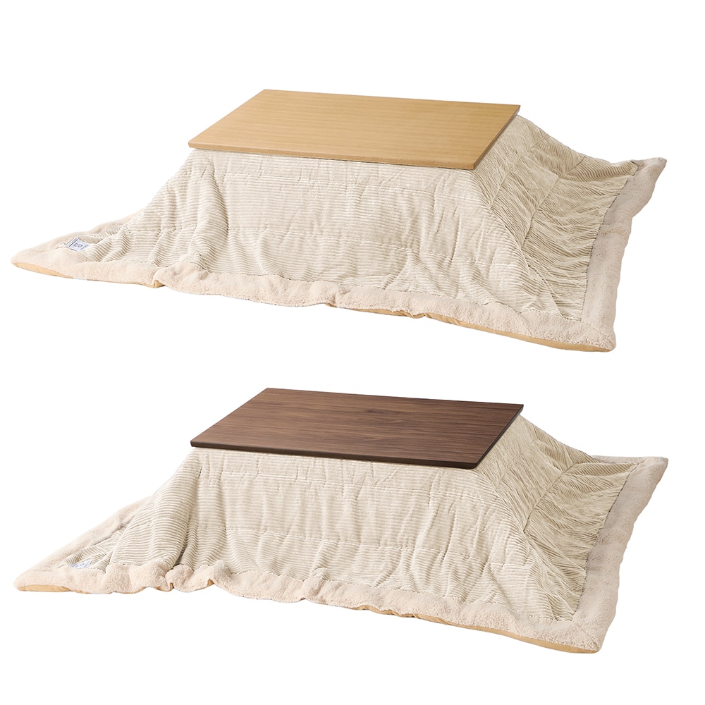 ●ナチュラルの天板にはアッシュ材、ブラウンにはウォルナット材を使用し、こたつ布団を合わせても木の質感を楽しめます
