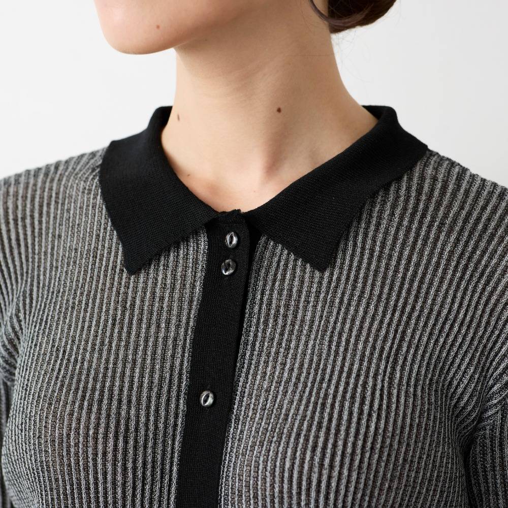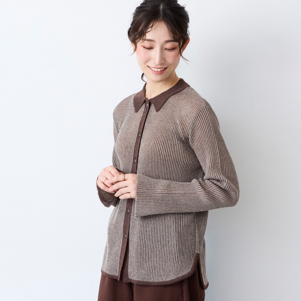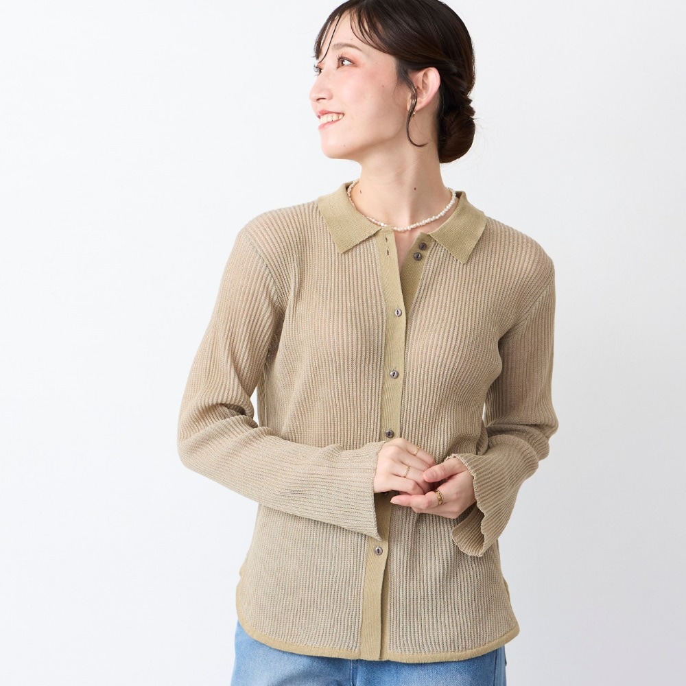 大人の上品シアー感プチ襟ニット