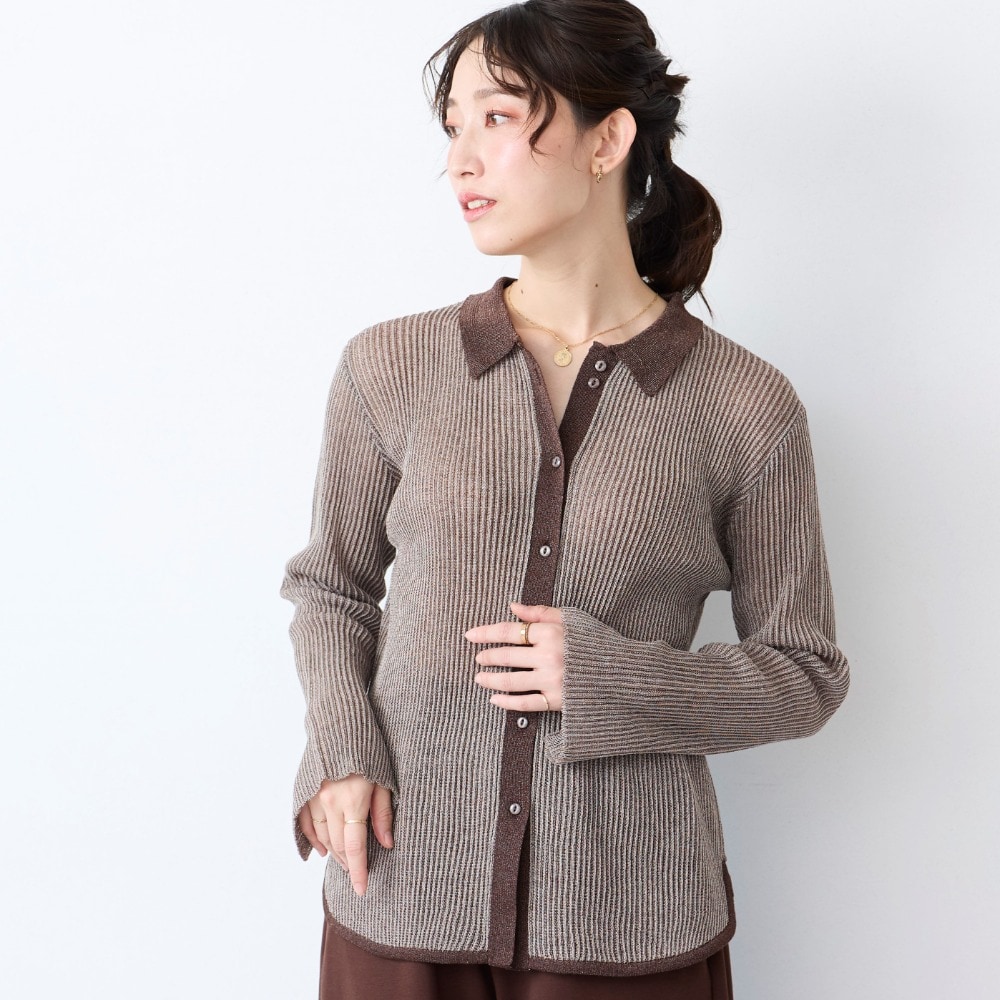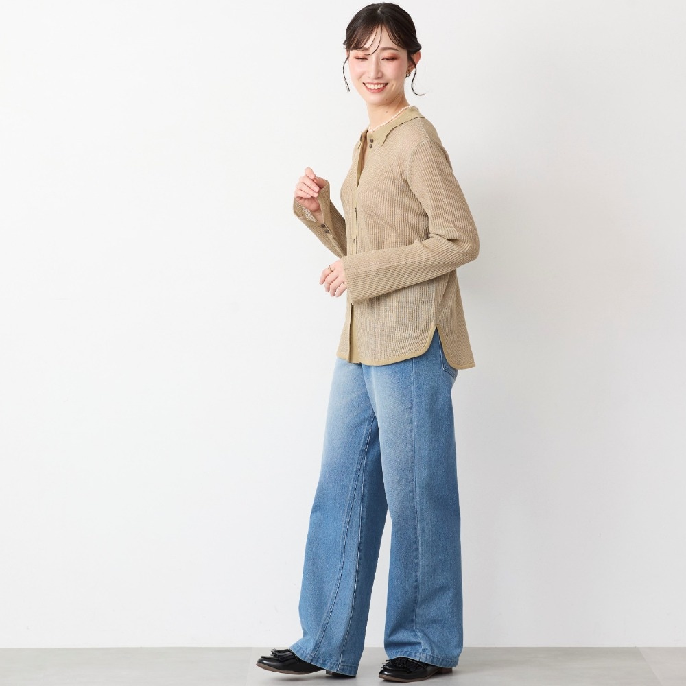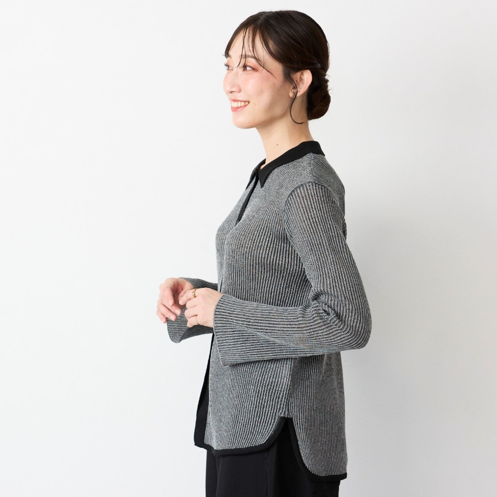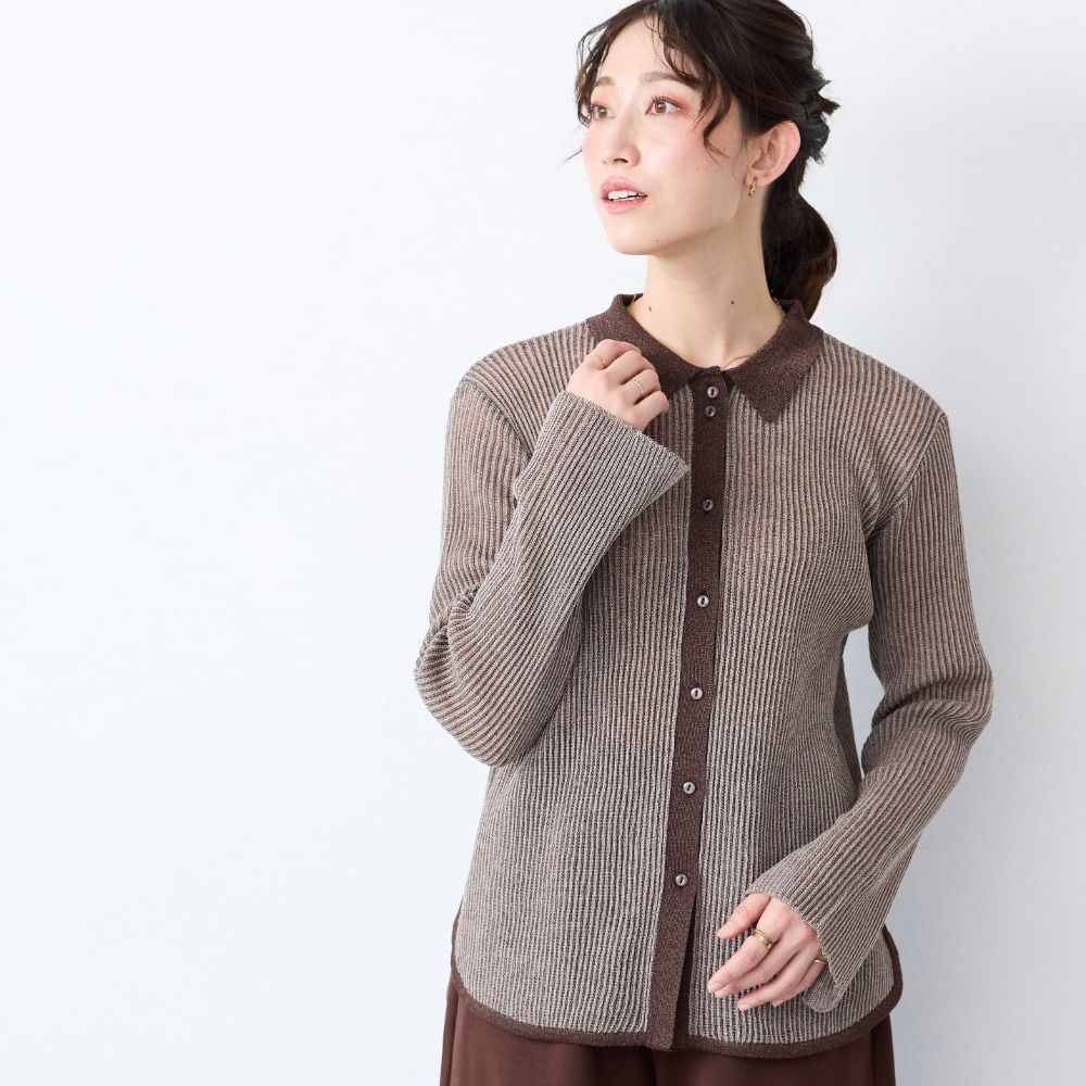 大人の上品シアー感プチ襟ニット
