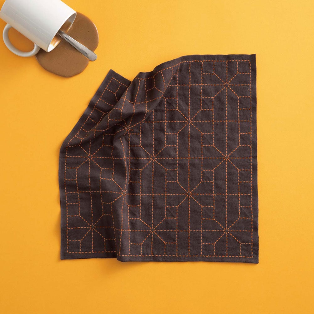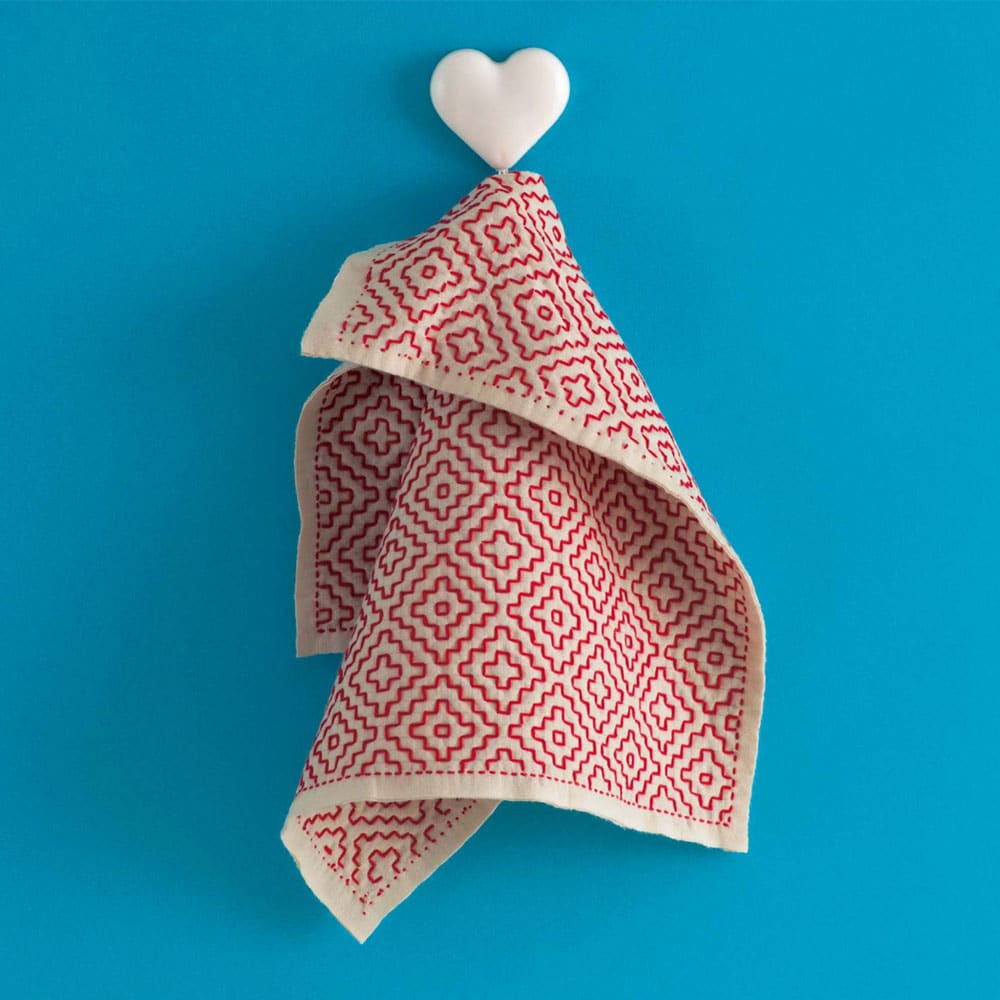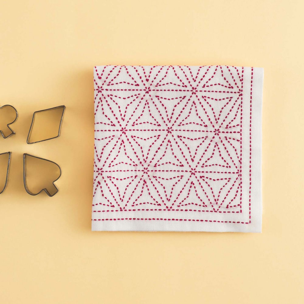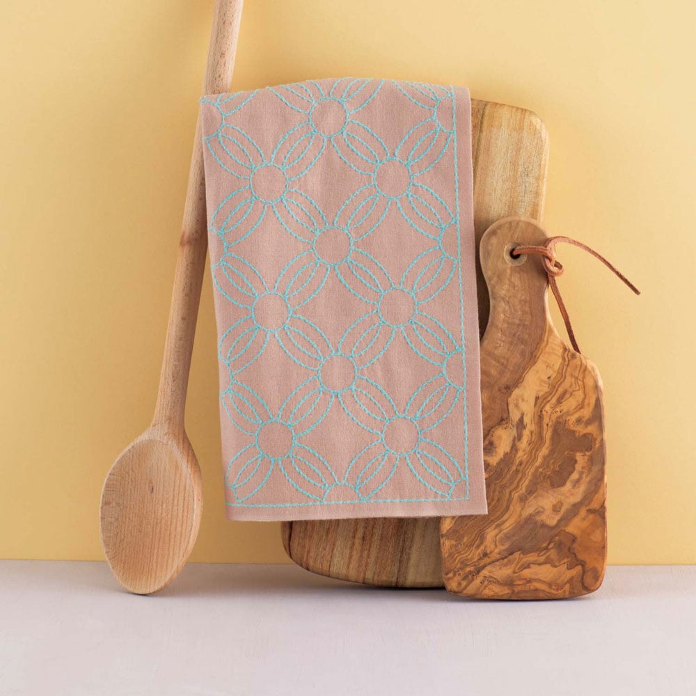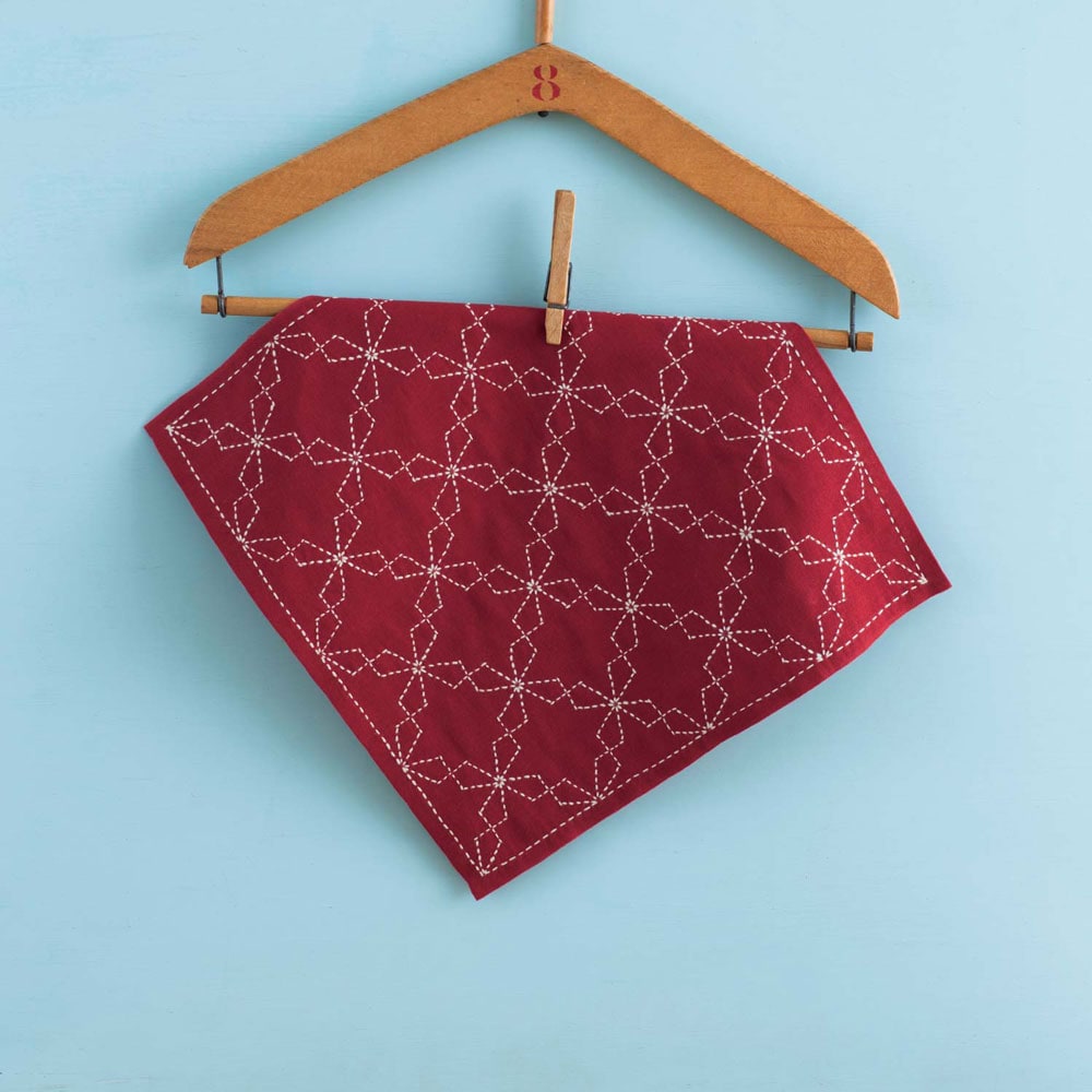 懐かしい伝統柄を華やかに綴る、刺し子の花ふきん