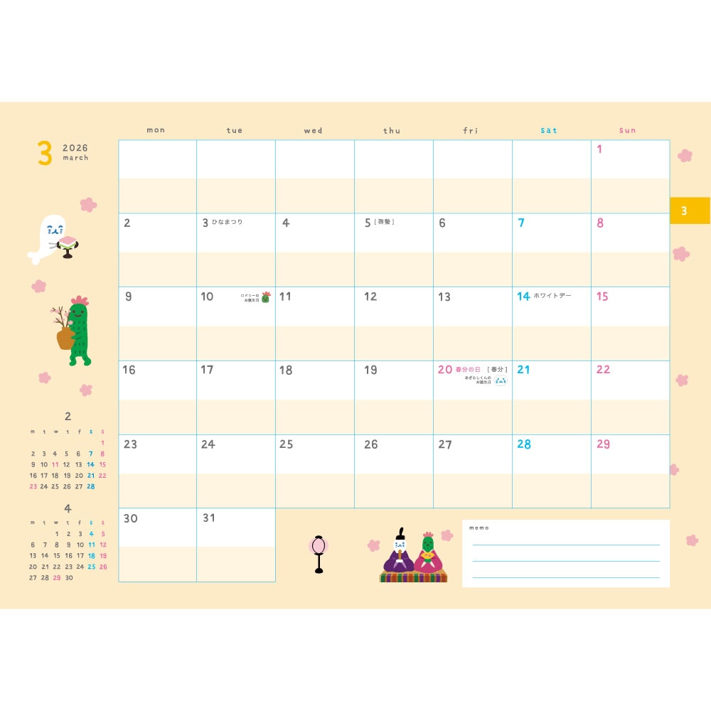 • 「ちょこちょこ手帳2026」マンスリーページ:3月