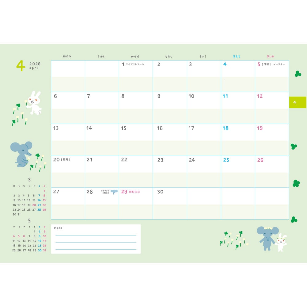 • 「ちょこちょこ手帳2026」マンスリーページ:4月