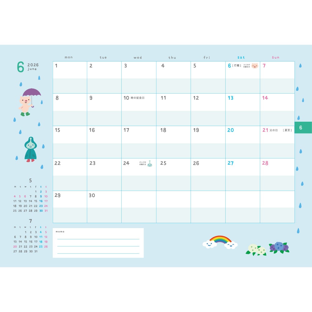 • 「ちょこちょこ手帳2026」マンスリーページ:6月