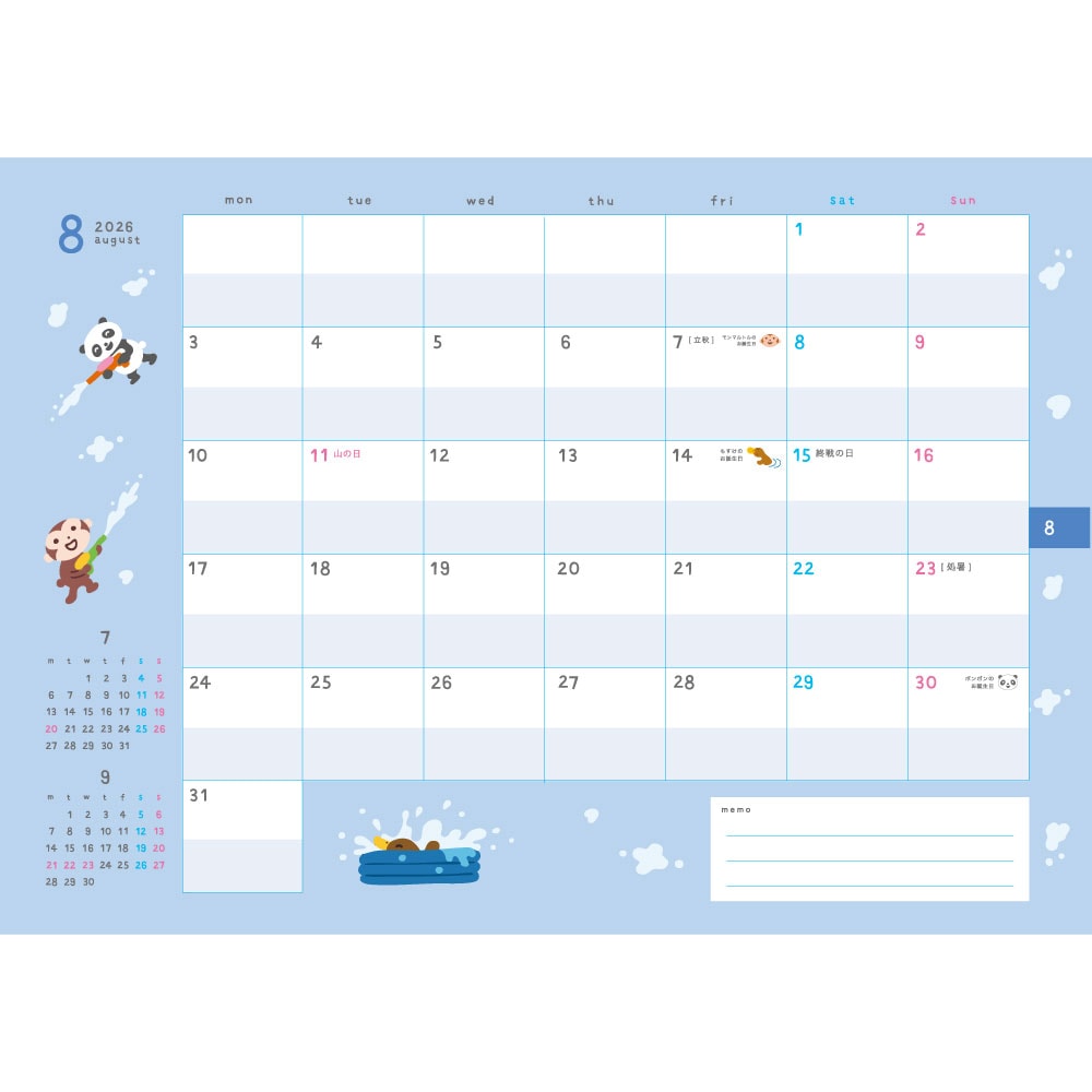 • 「ちょこちょこ手帳2026」マンスリーページ:8月