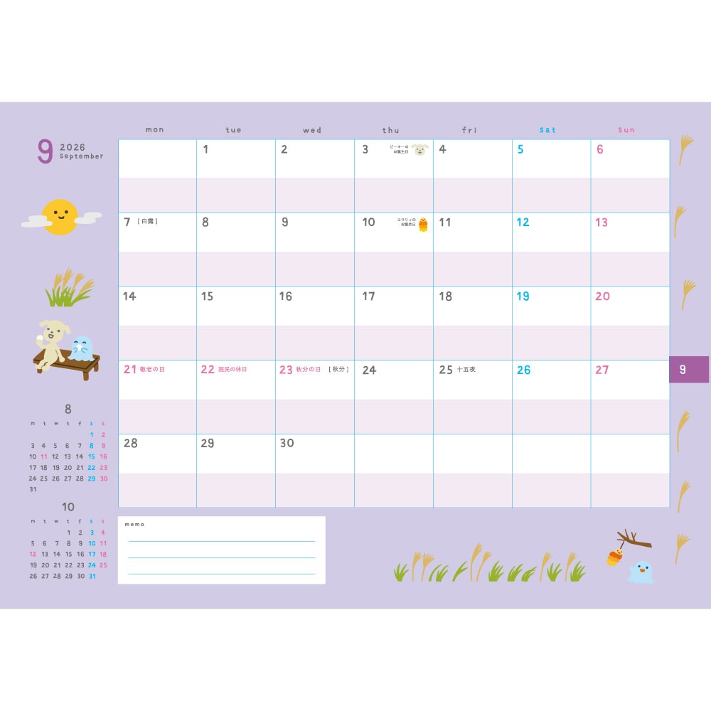 • 「ちょこちょこ手帳2026」マンスリーページ:9月