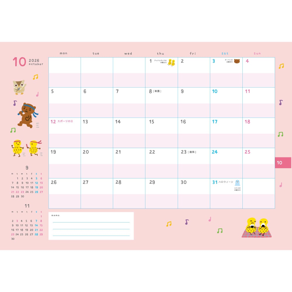 • 「ちょこちょこ手帳2026」マンスリーページ:10月