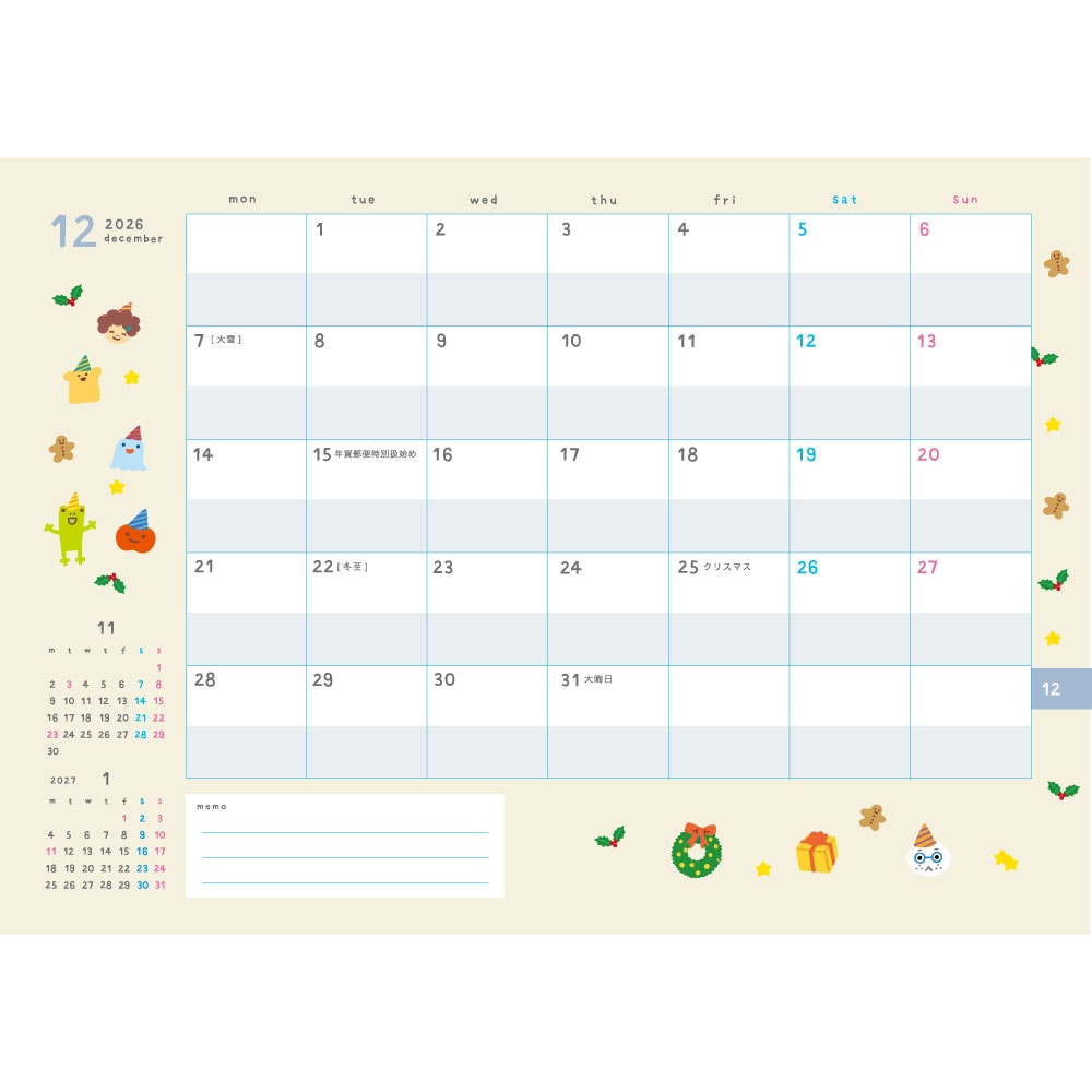 • 「ちょこちょこ手帳2026」マンスリーページ:12月