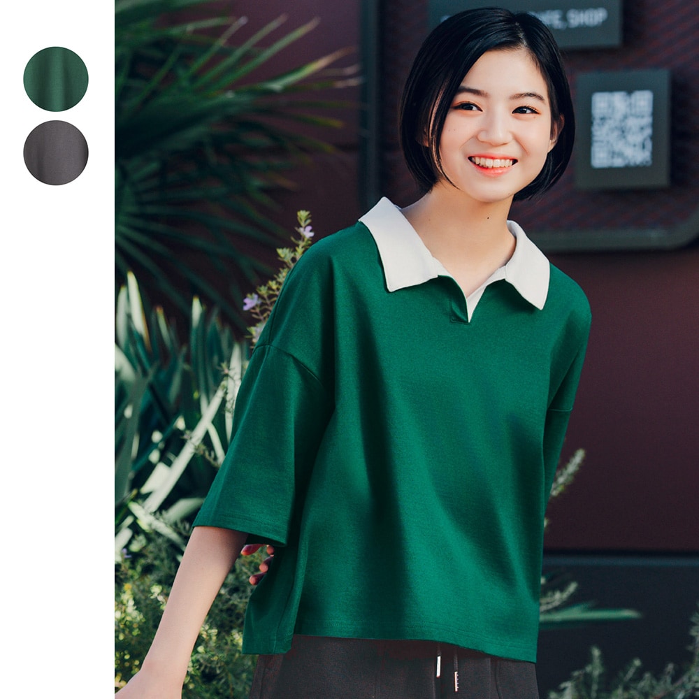 スキッパー襟タフ綿素材ハーフスリーブプルオーバー 【子供服】