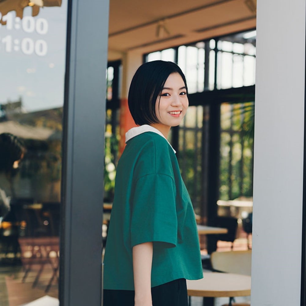 ・トレンドのスキッパー襟ですっきり見え