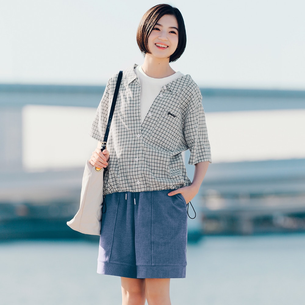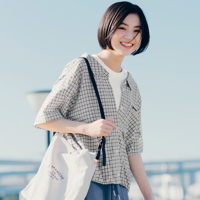 一枚でおしゃれ見えするレイヤード風チェックシャツ