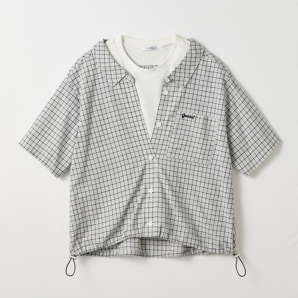 ・Tシャツ×チェックシャツのレイヤード風デザイン