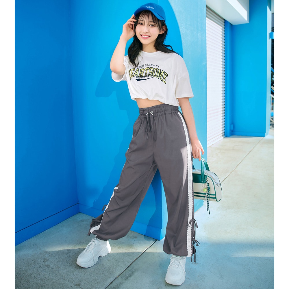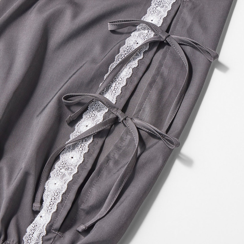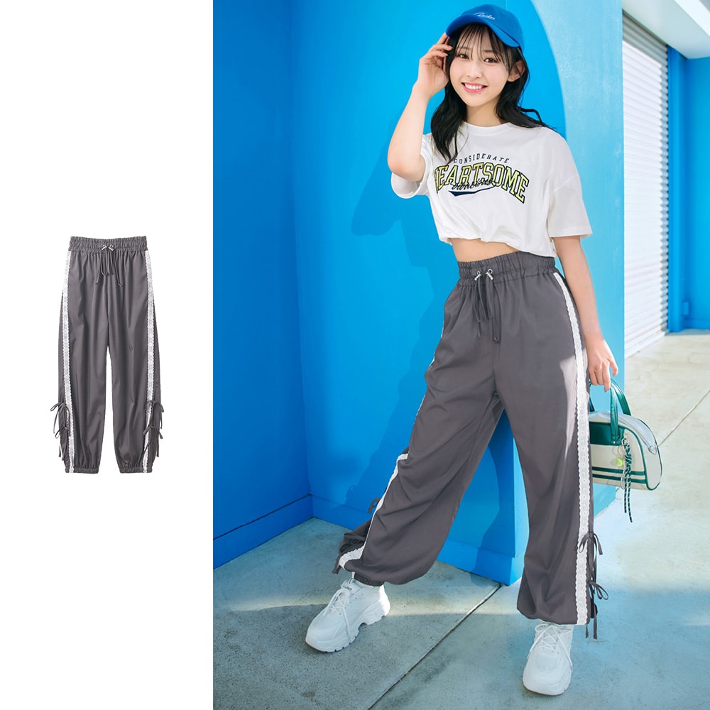 サイドレース裾ゴムリボンワイドパンツ(ウエスト調節可) 【子供ズボン】