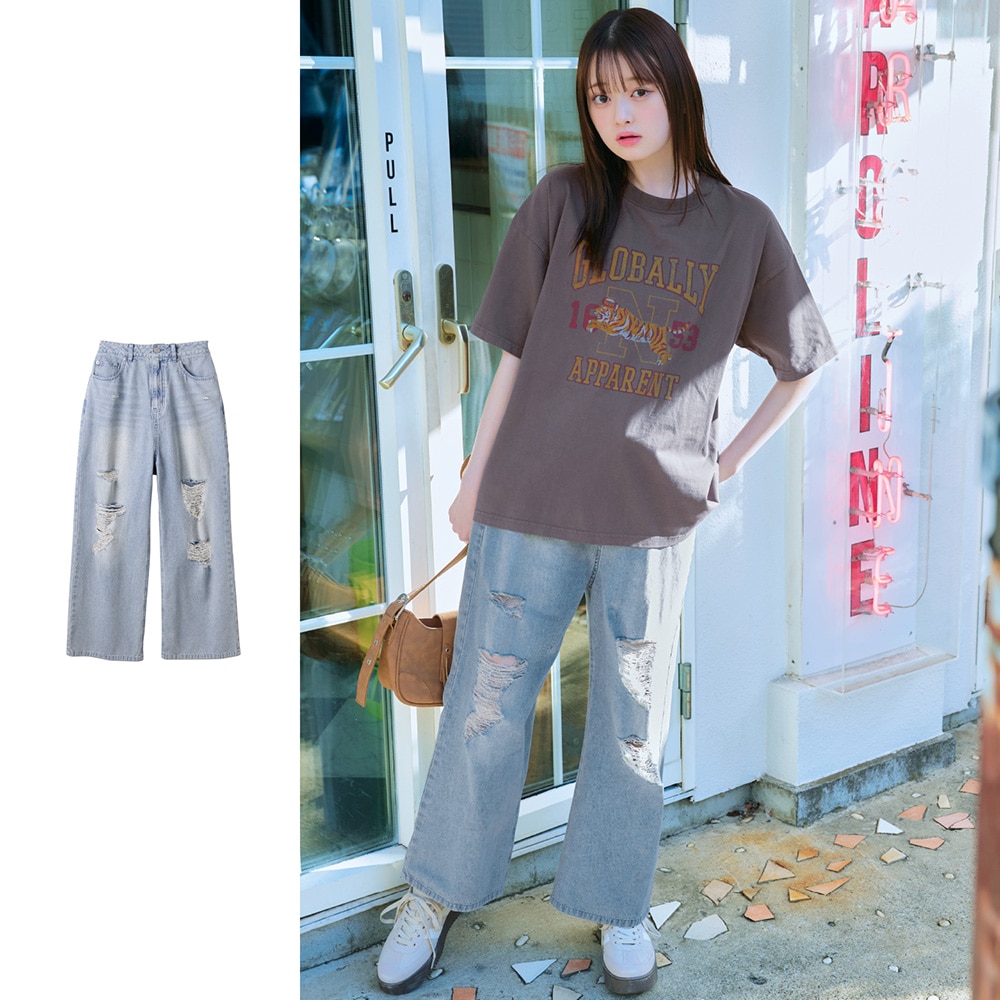 ダメージ加工と色落ち加工でトレンド感たっぷり